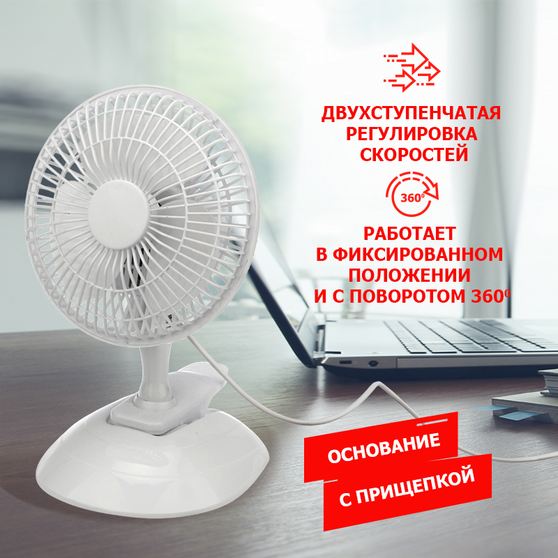 Настольный вентилятор DUX 15 Вт, белый, 2 в 1, белый
