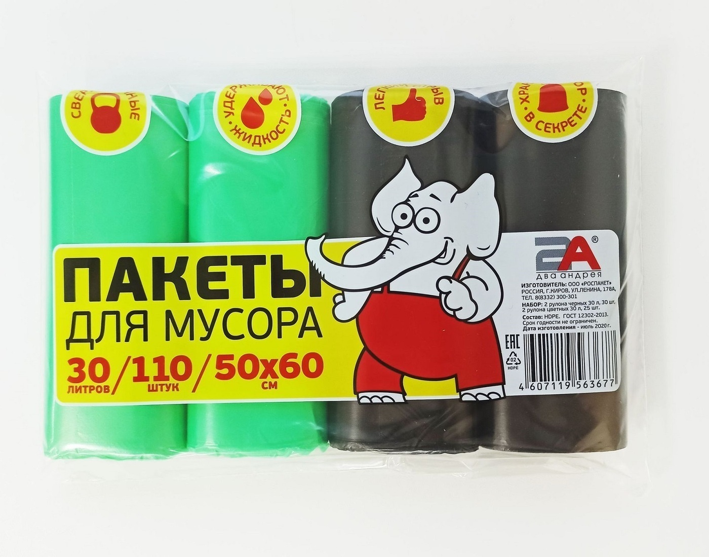 Мешки для мусора Два Андрея 30 л х 4 рул (1 уп)