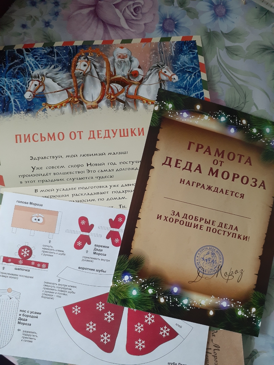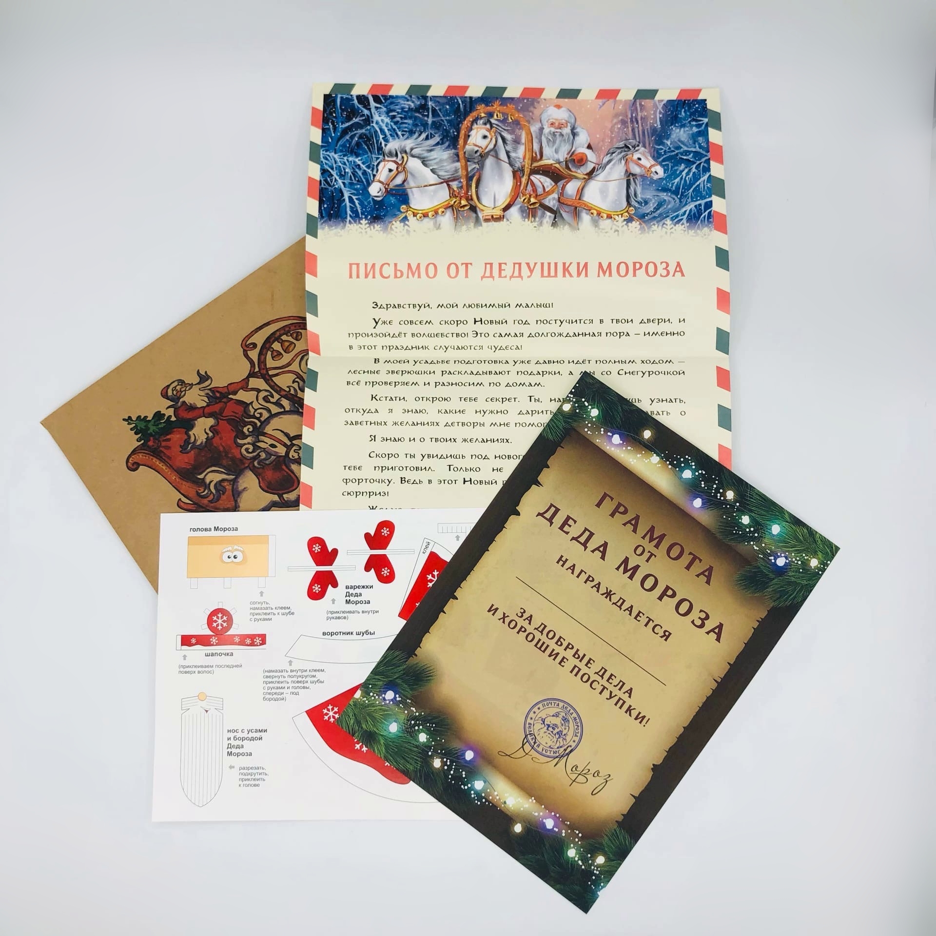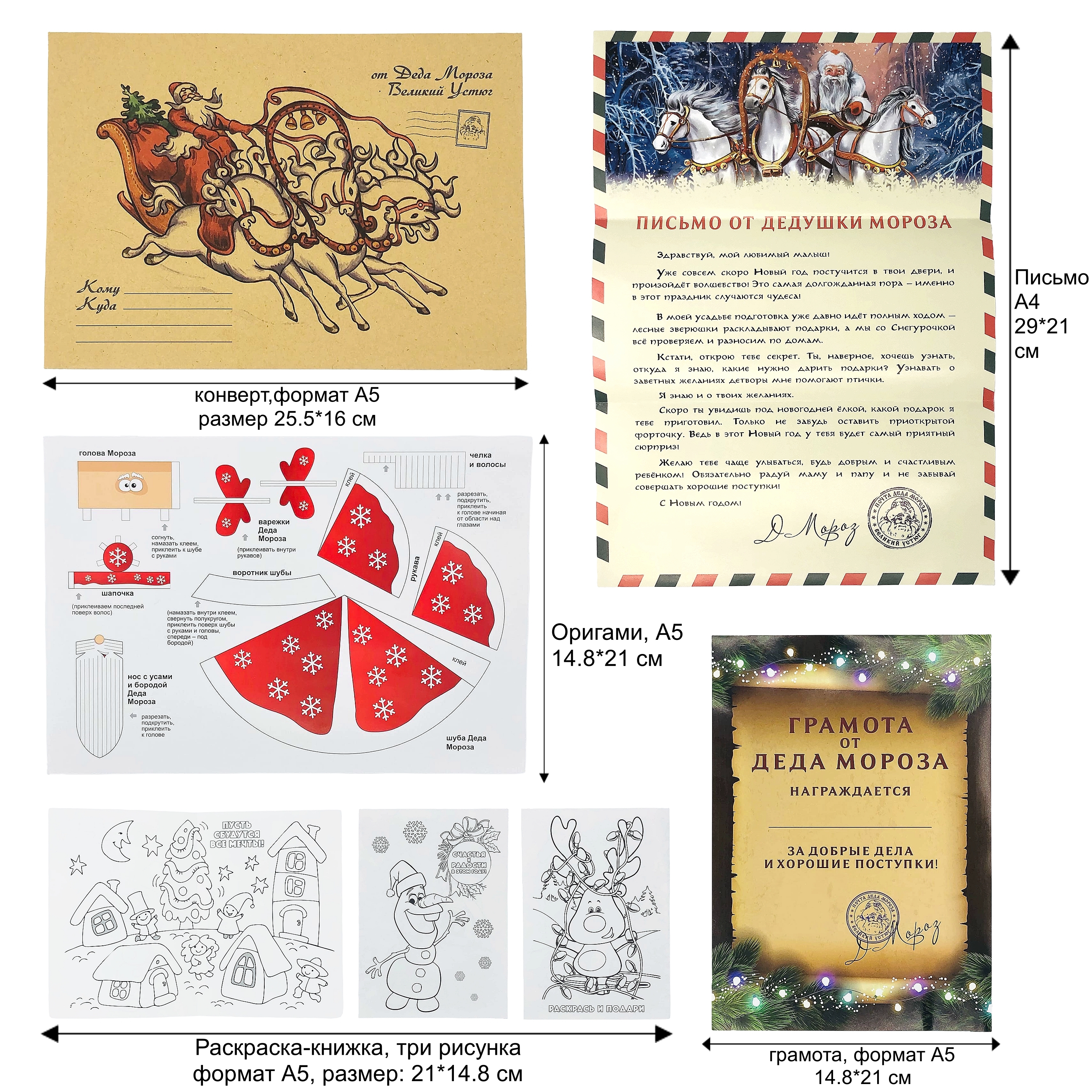 Письмо от Деда Мороза (Конверт, Письмо, Грамота, Оригами, Раскраска) 3 штуки