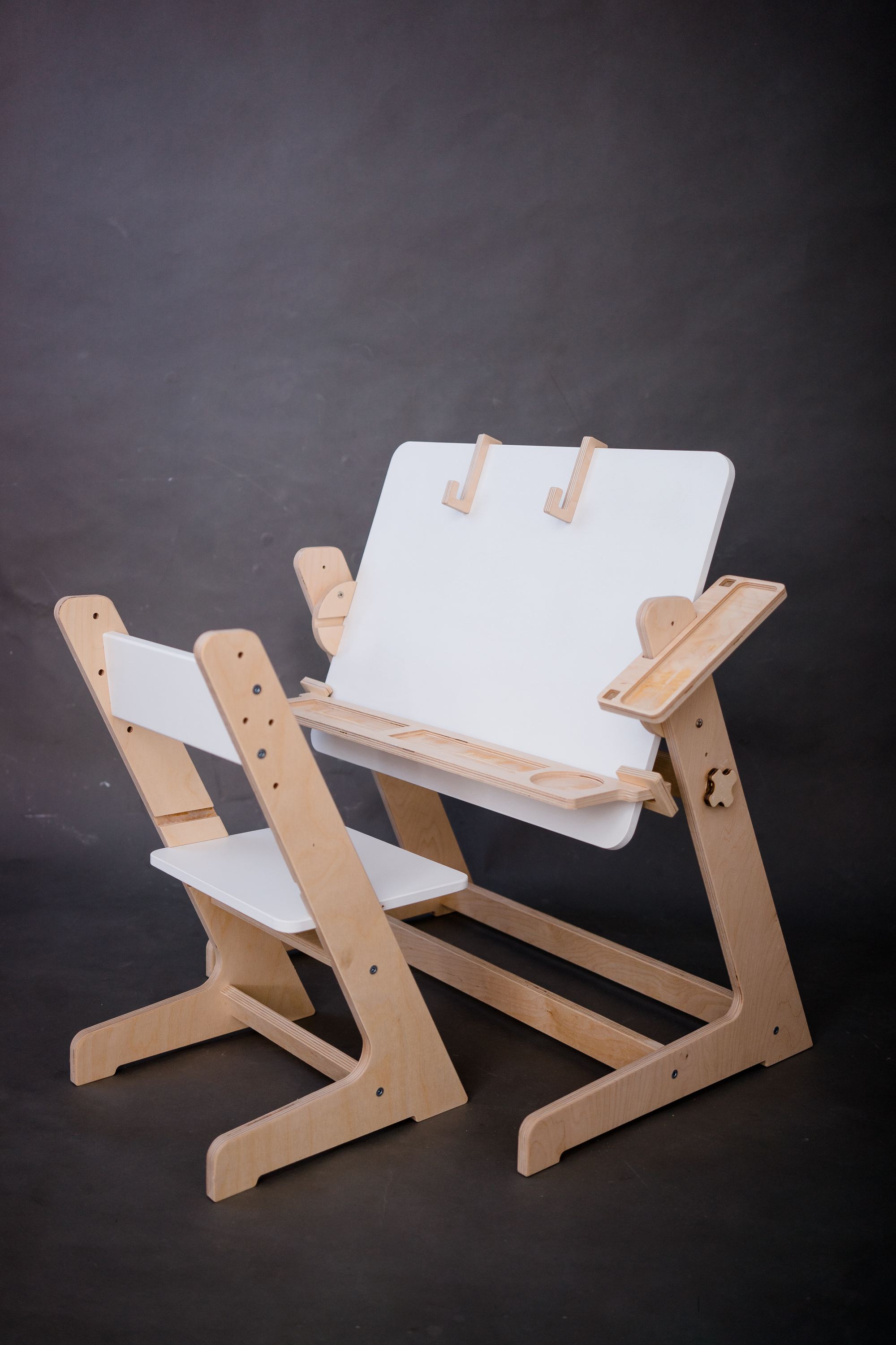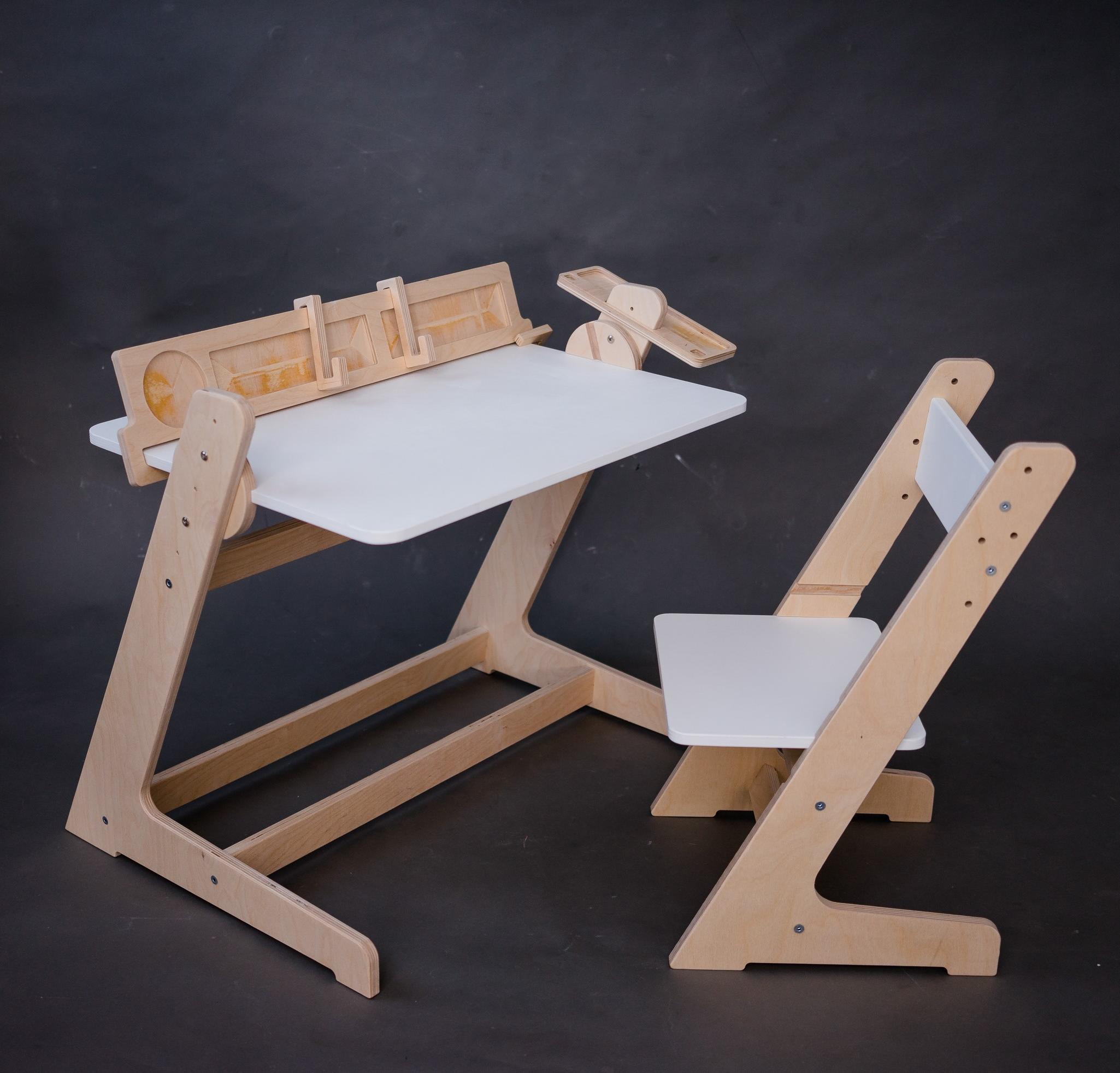 Набор растущий стол и стул "Easy Mimi" для детей, детский комплект стул и стол и парта, мольберт (белый)