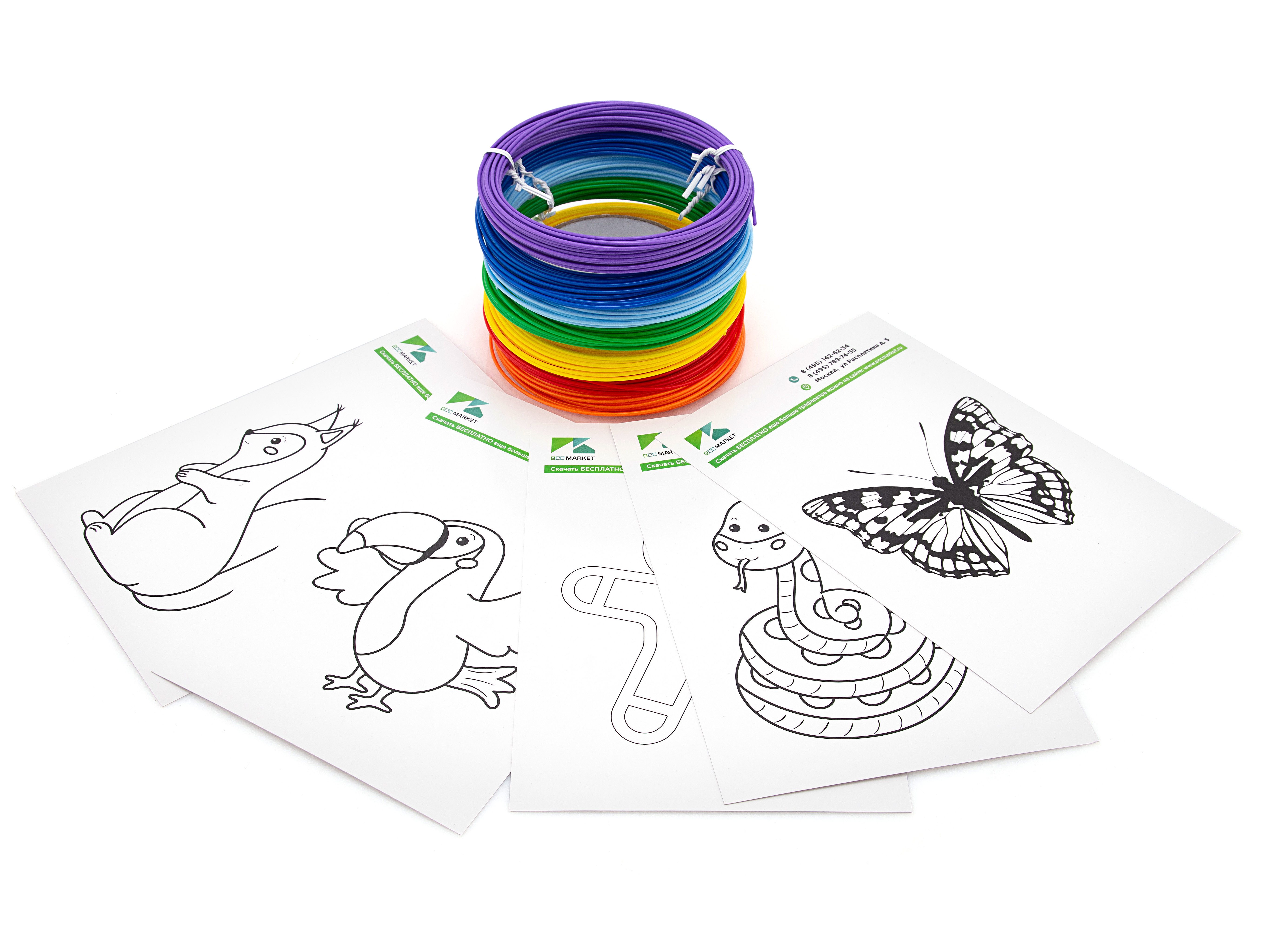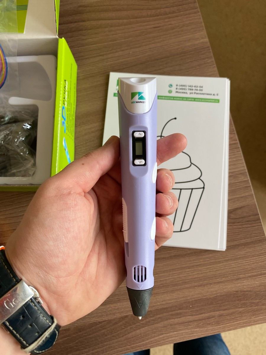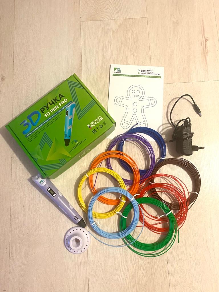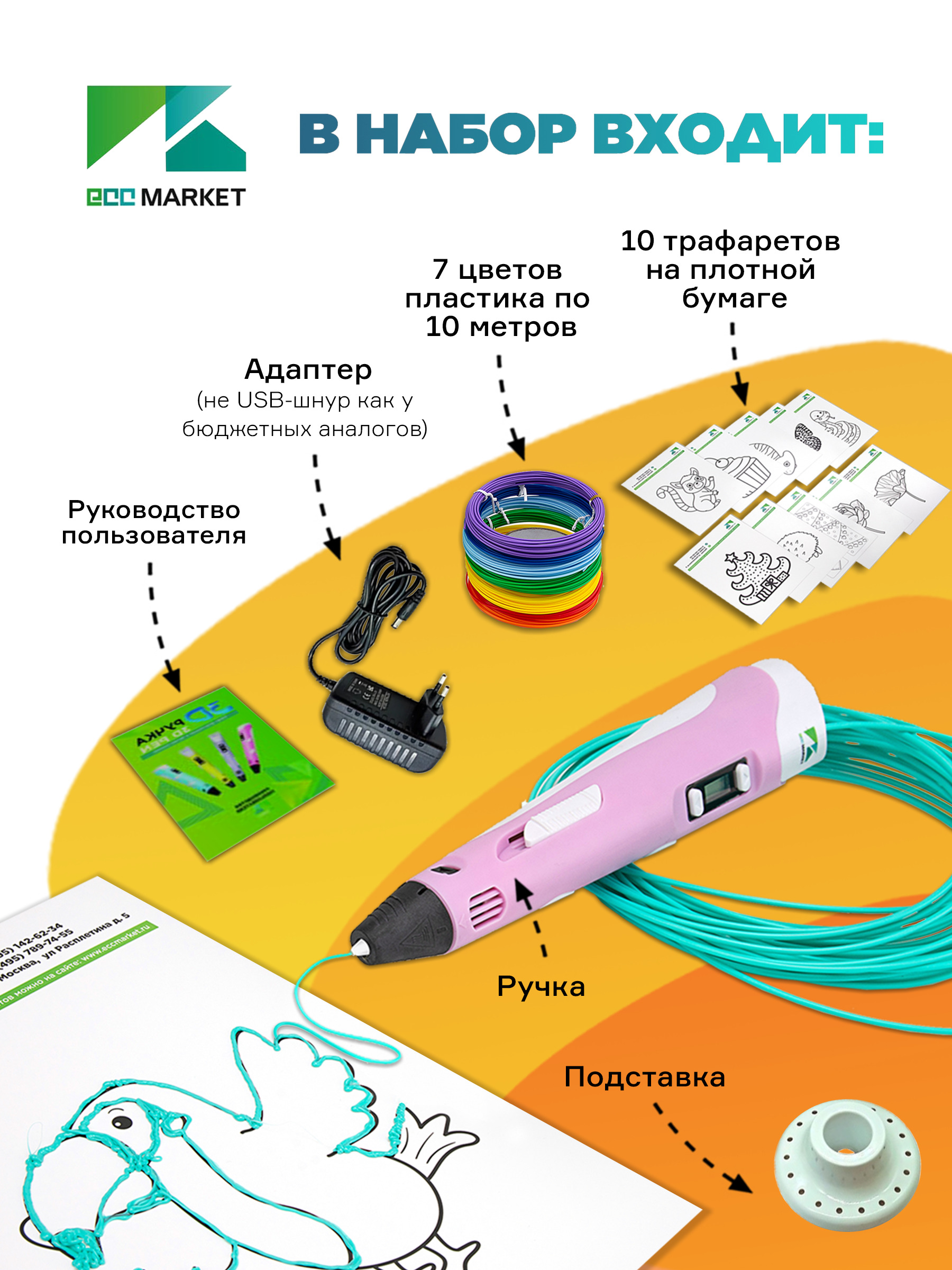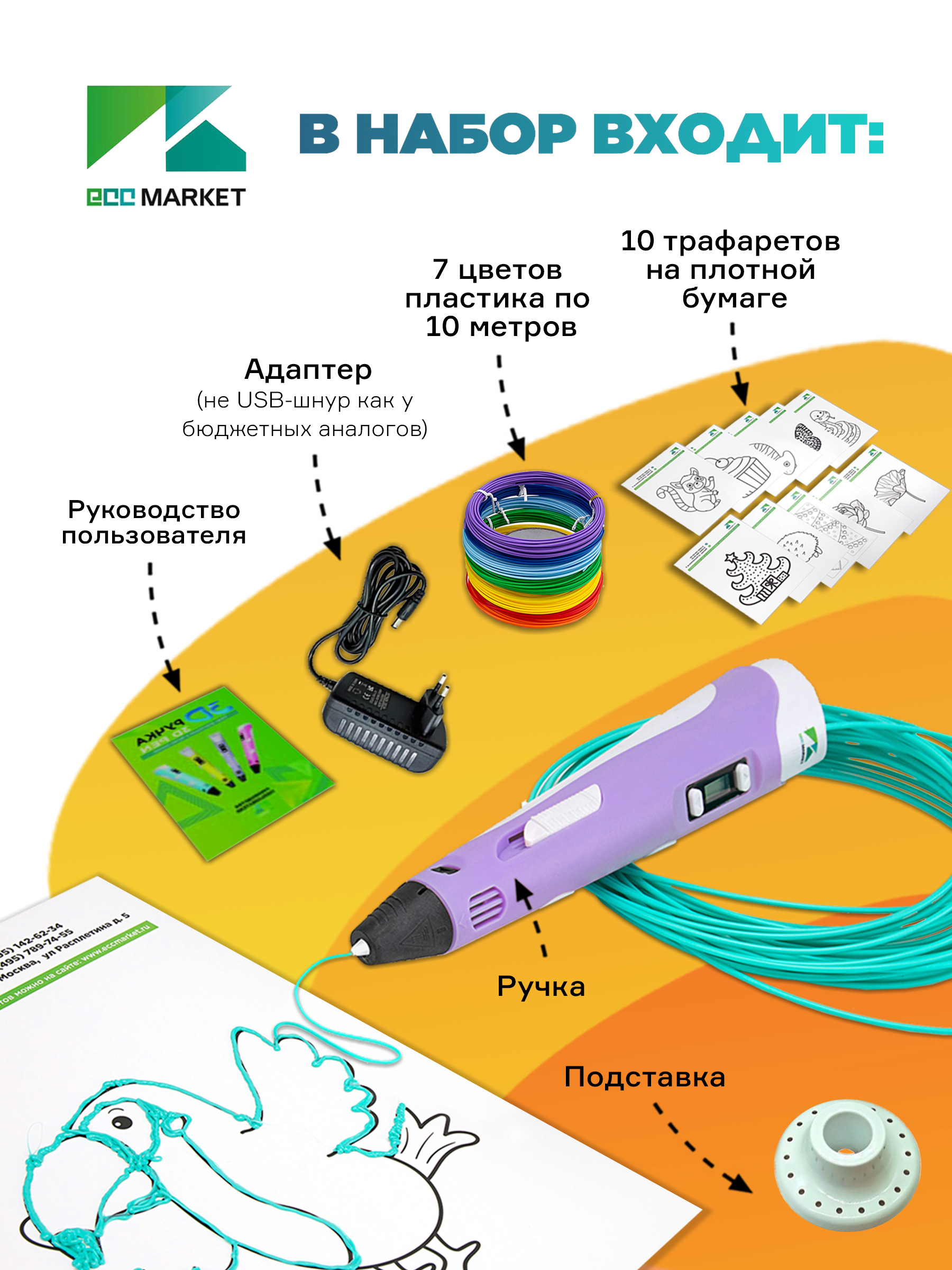 3D ручка 3Dpen3 фиолетовая с дополнительным апельсиновым пластиком и трафаретами