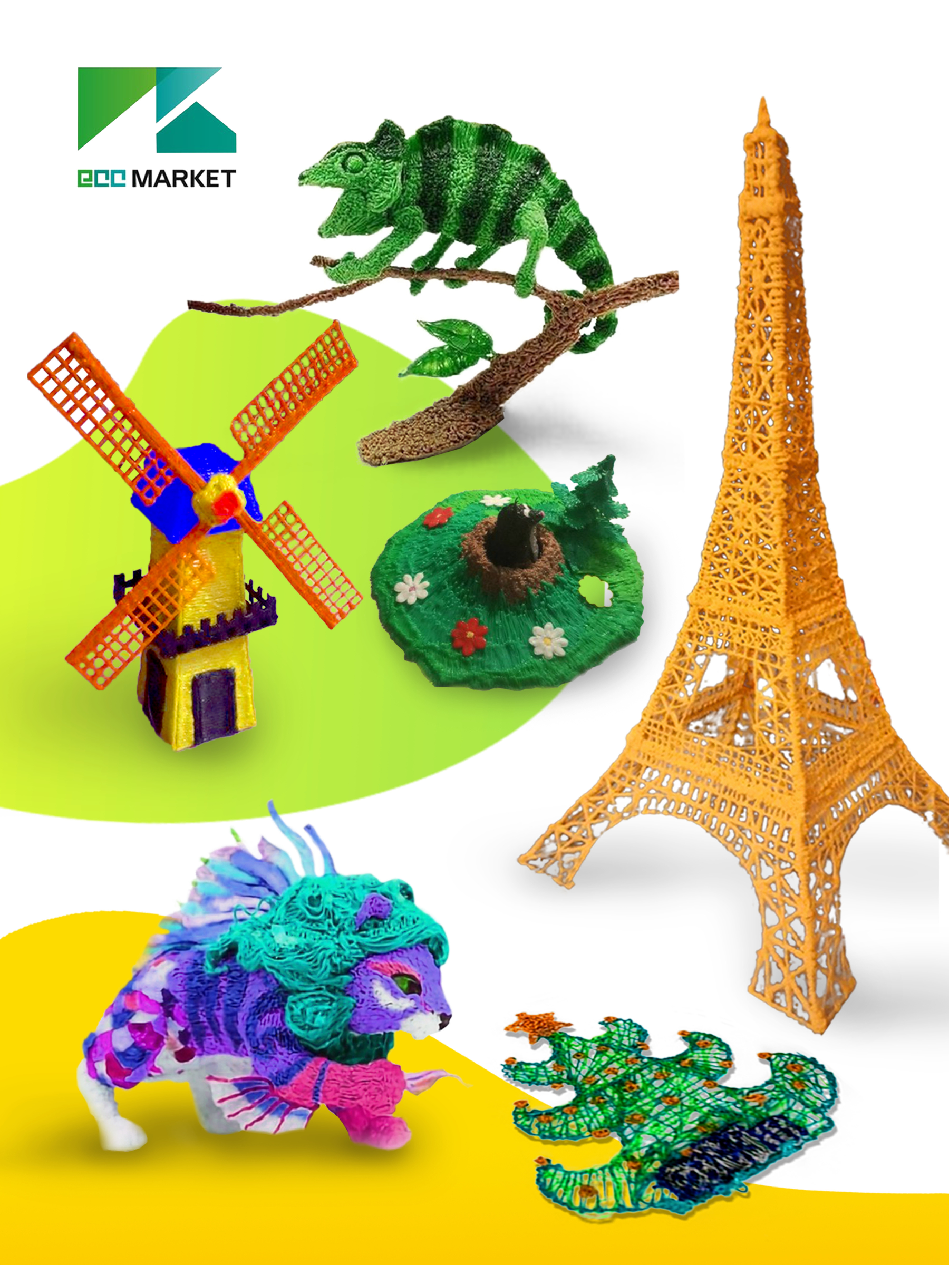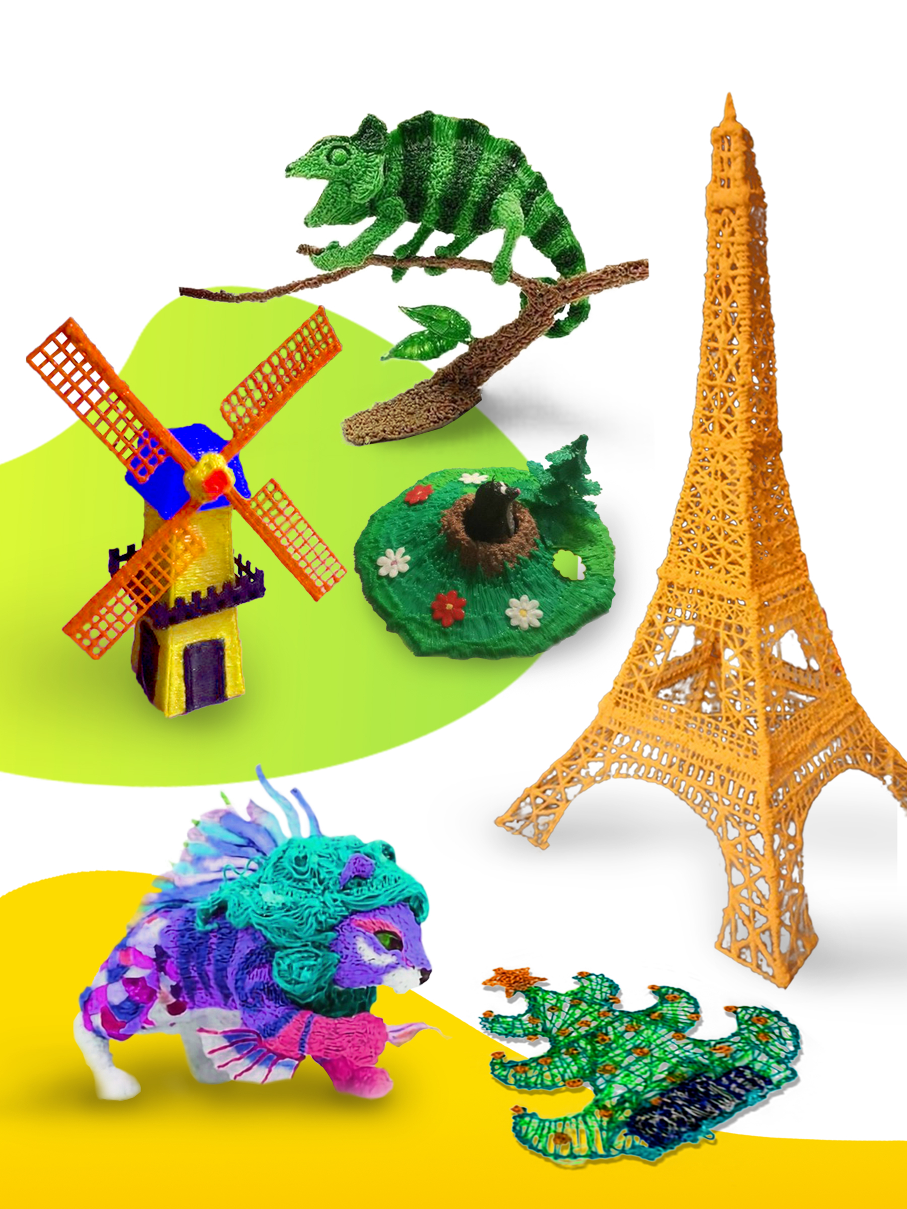 3D ручка 3Dpen2 желтая с дополнительным золотым пластиком и трафаретами / подарочный набор для детей / творческий набор
