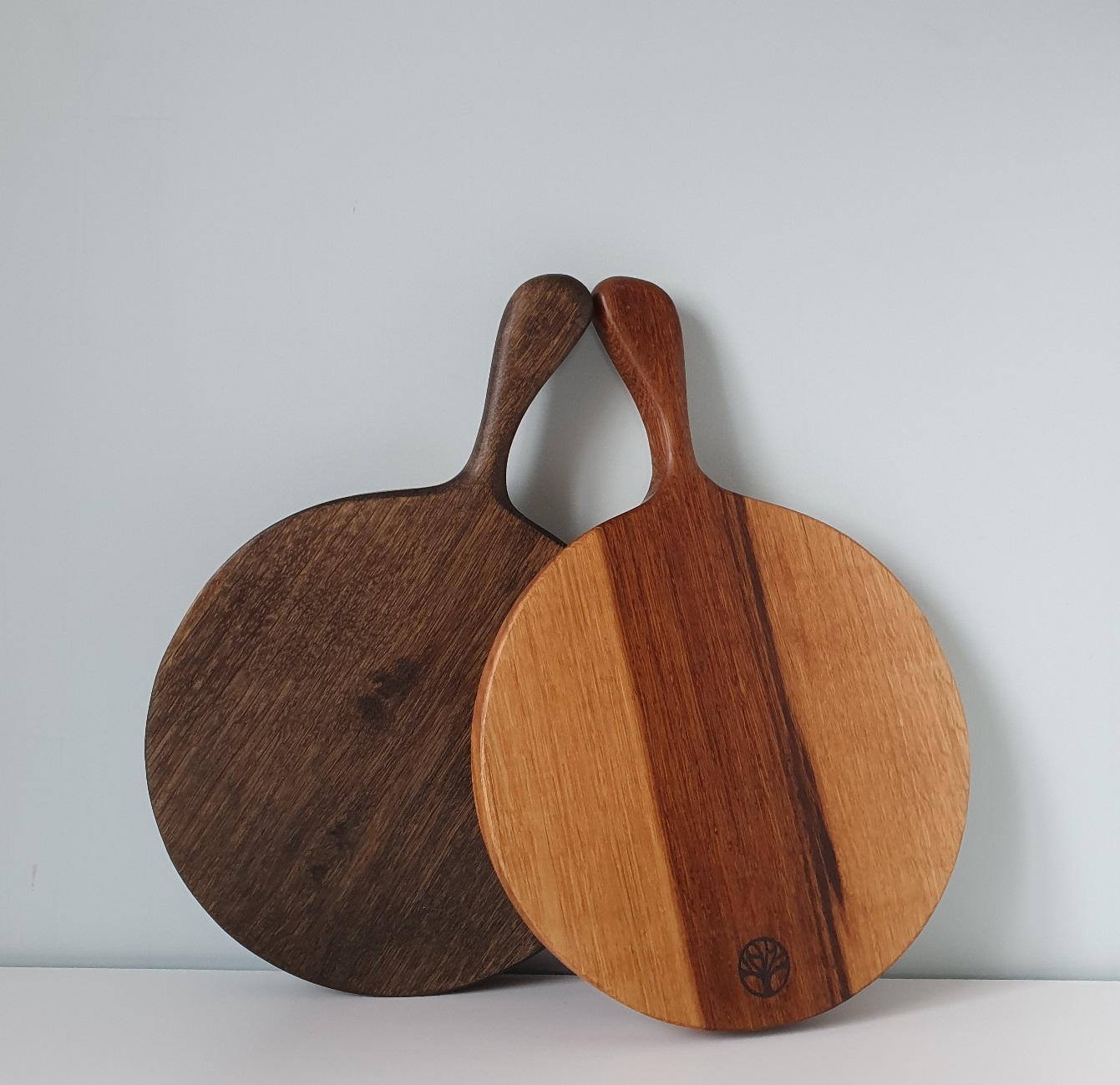 Разделочная доска из дуба "RETIC" светлая, круглая с ручкой