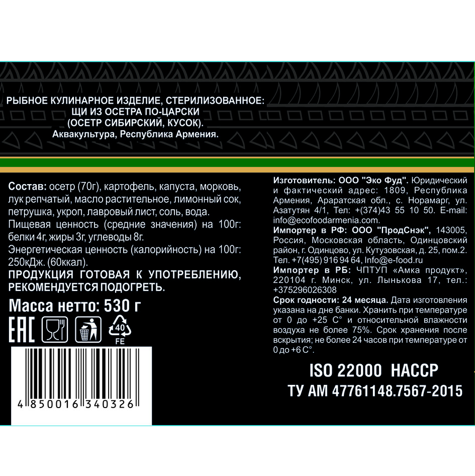 Щи из осетра по-царски, 530г х 4шт ECOFOOD