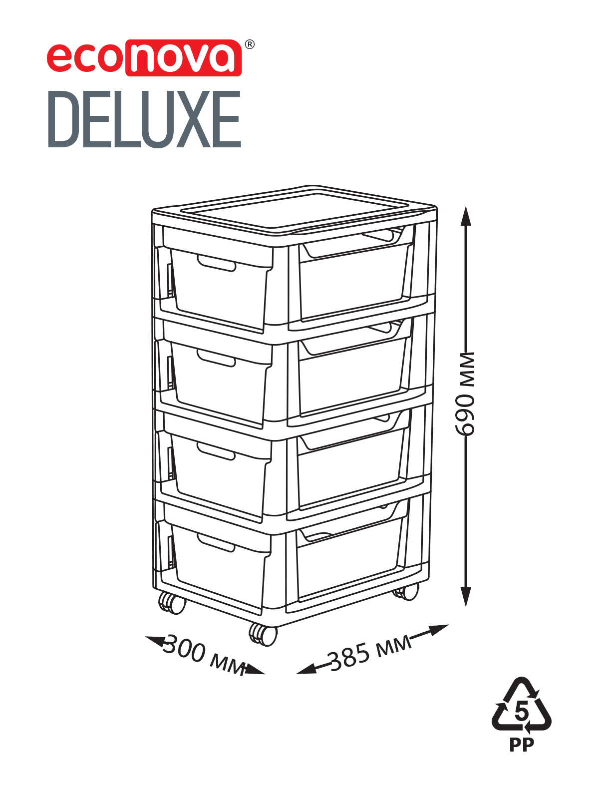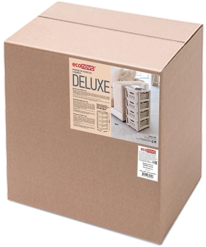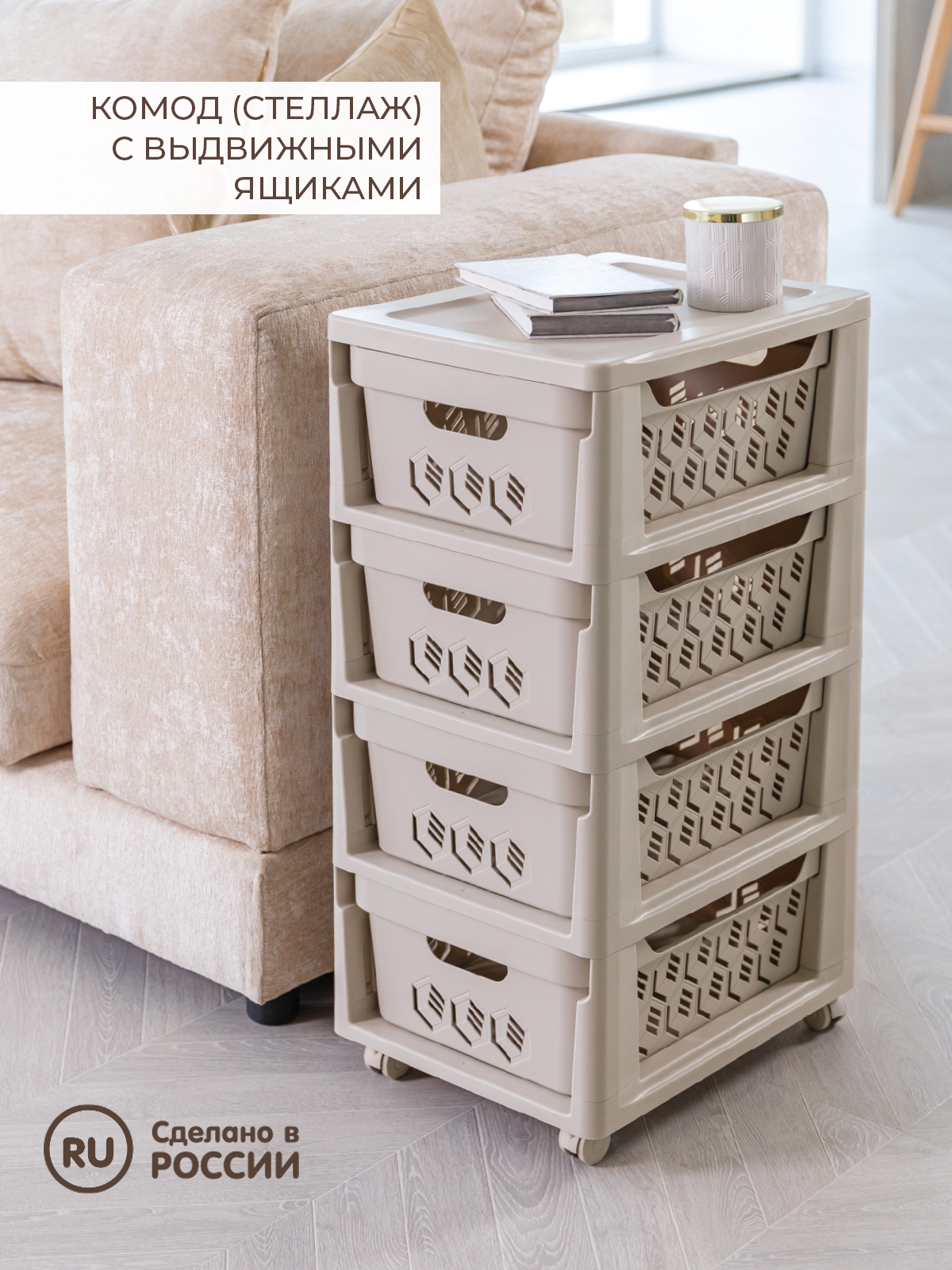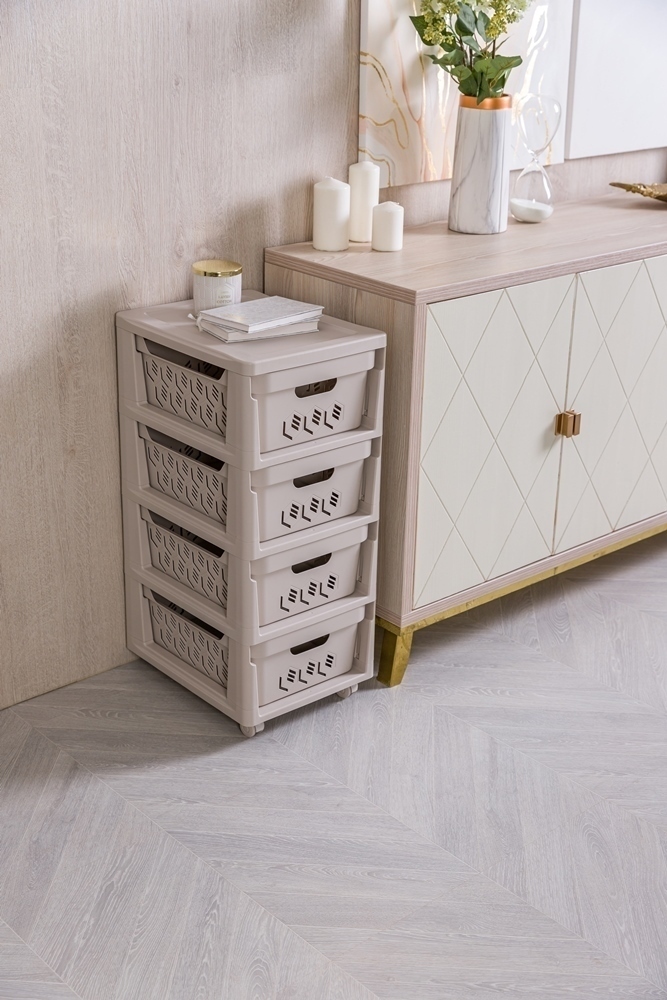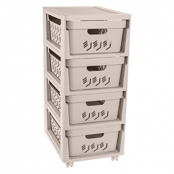 Комод на колесах DELUXE, 4 ящика, 30х38,5х69 см. (светло-бежевый)