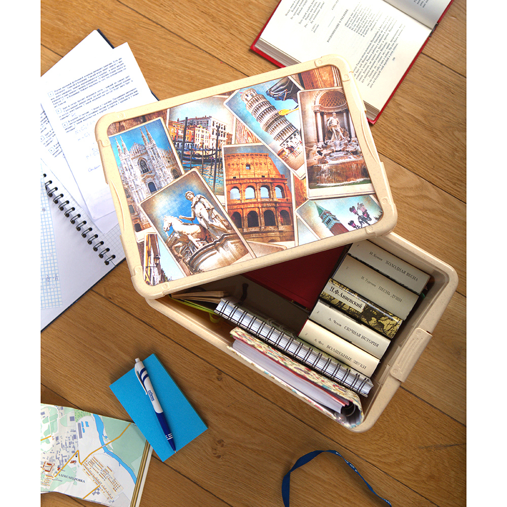 Ящик с крышкой универсальный "LUXE", 286х286х286 мм, 18л (Светло-бежевый)
