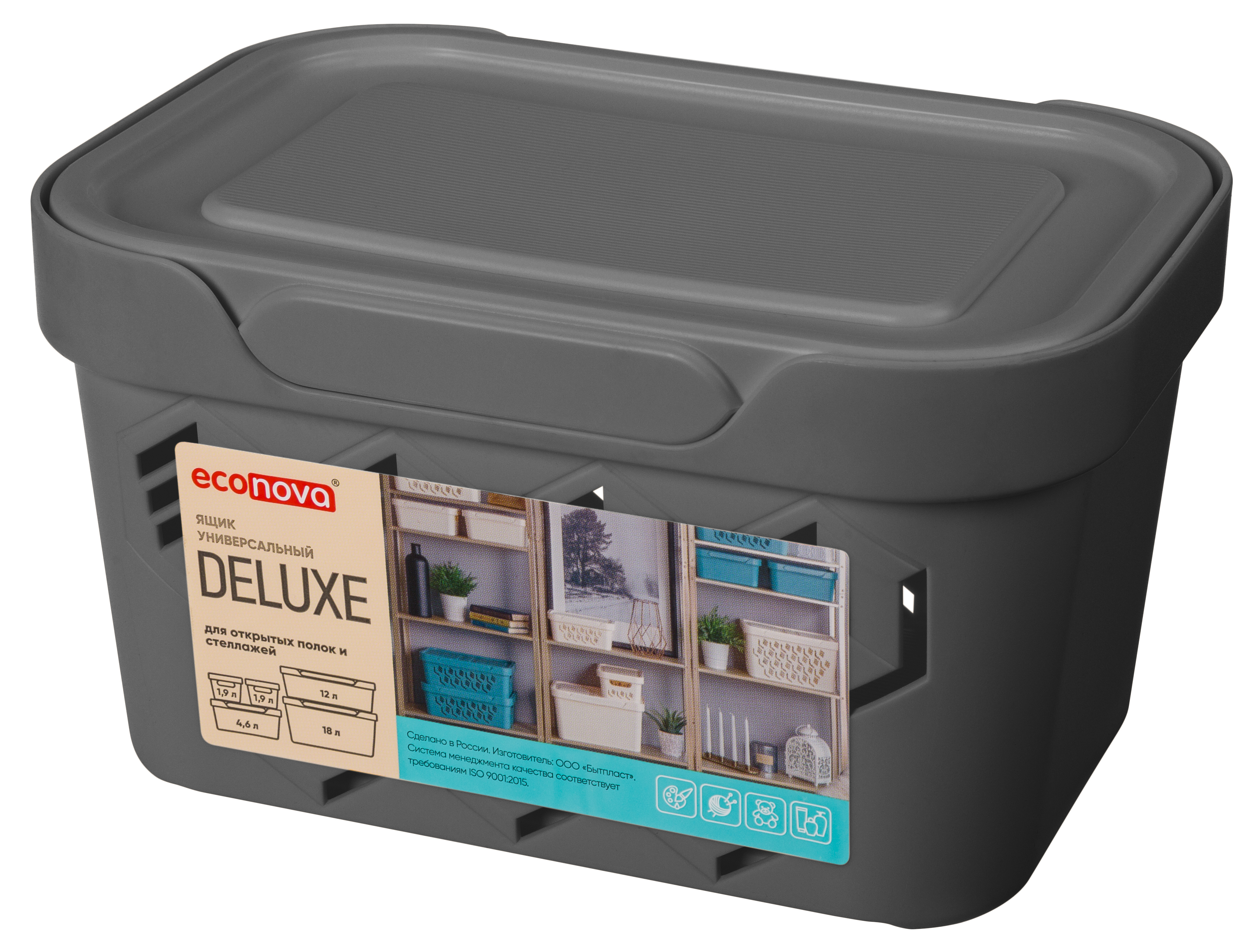 Ящик с крышкой универсальный "DELUXE", 286х286х286 мм, 18л (Серый)
