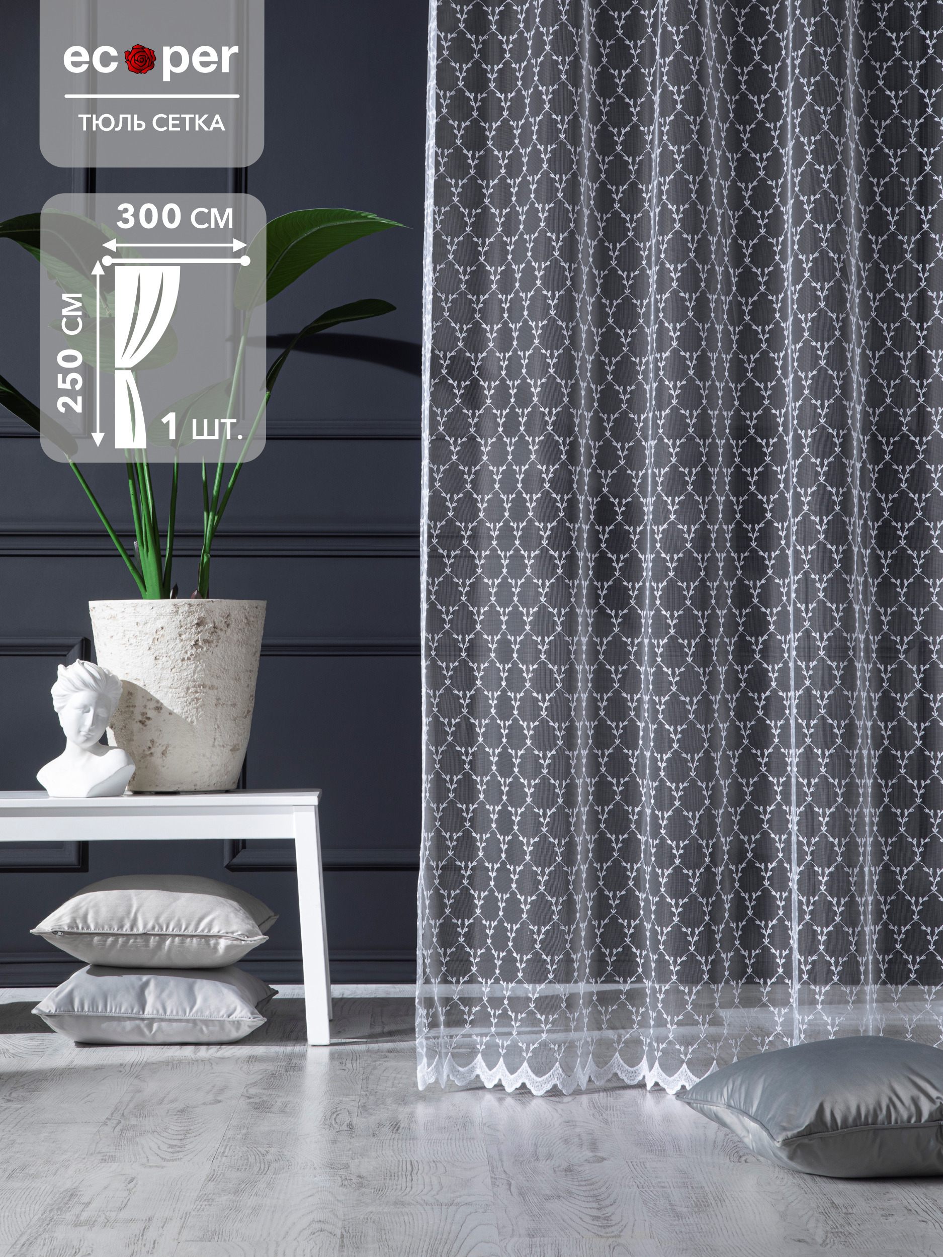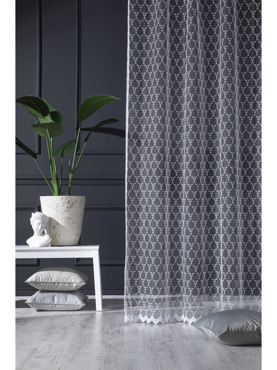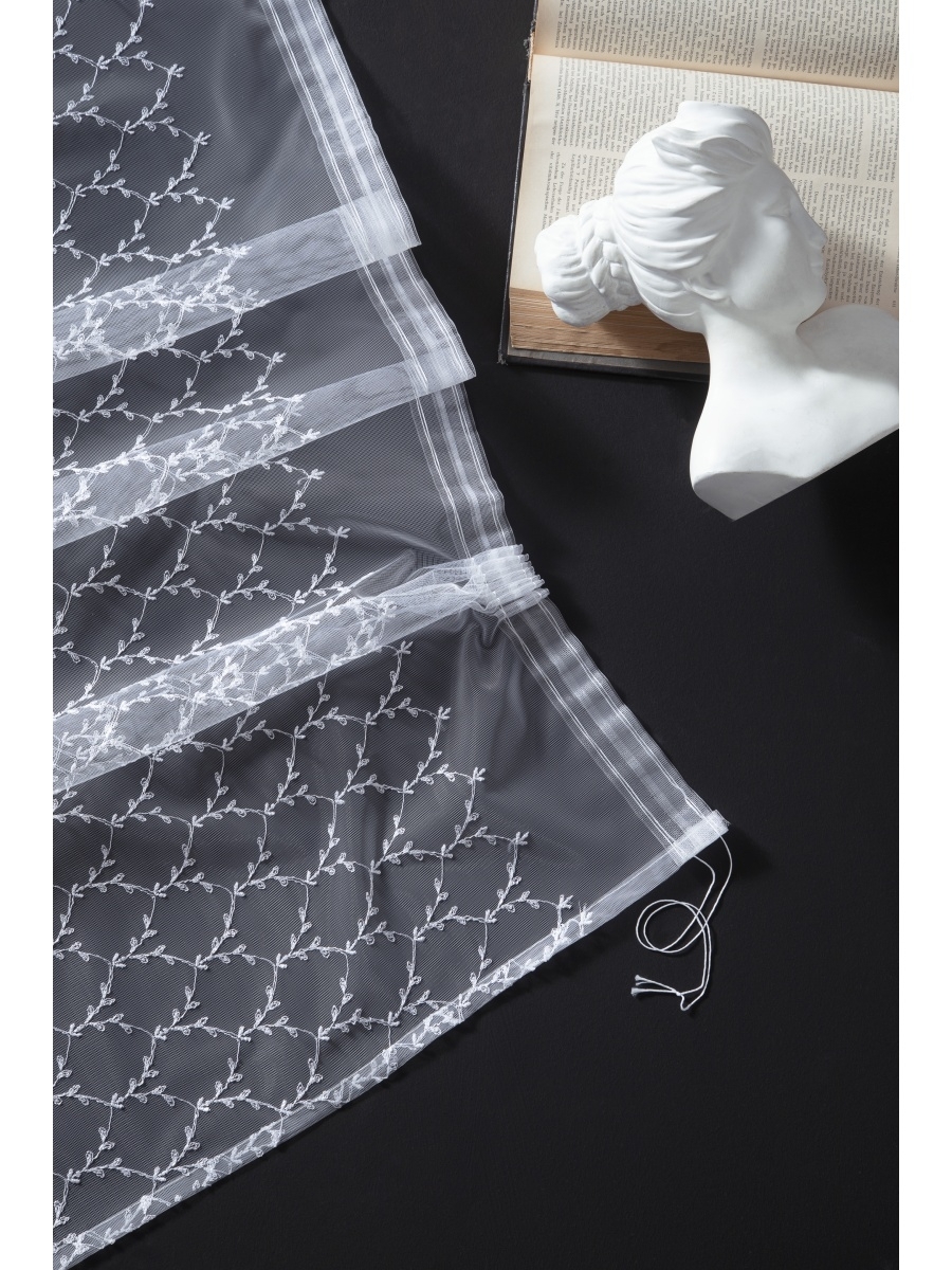 Тюль, Тюль для кухни ecoper ECO84 Турция высота 250 см, ширина 300 см, крепление - Лента, белый мрамор каскад