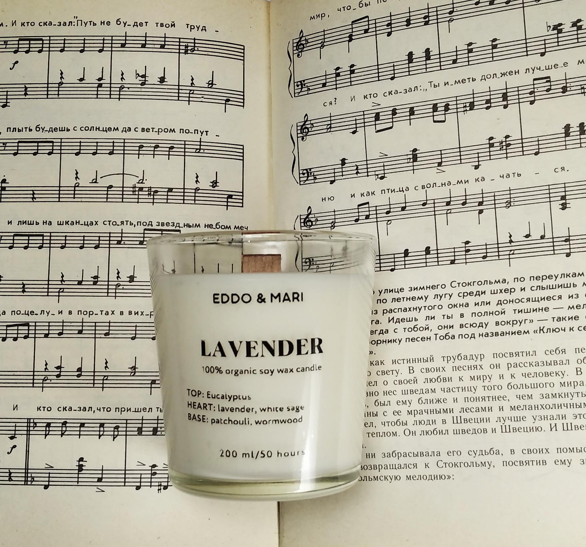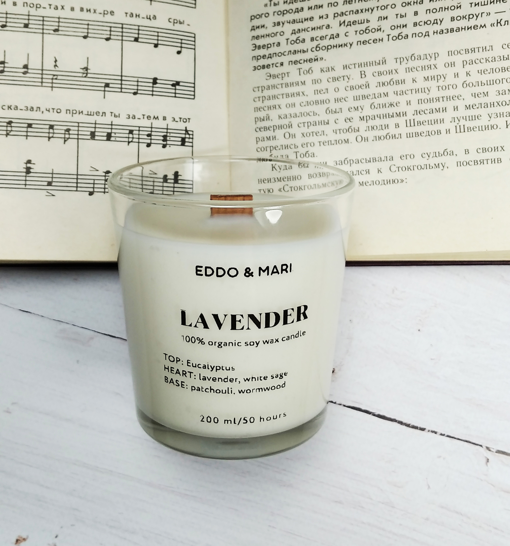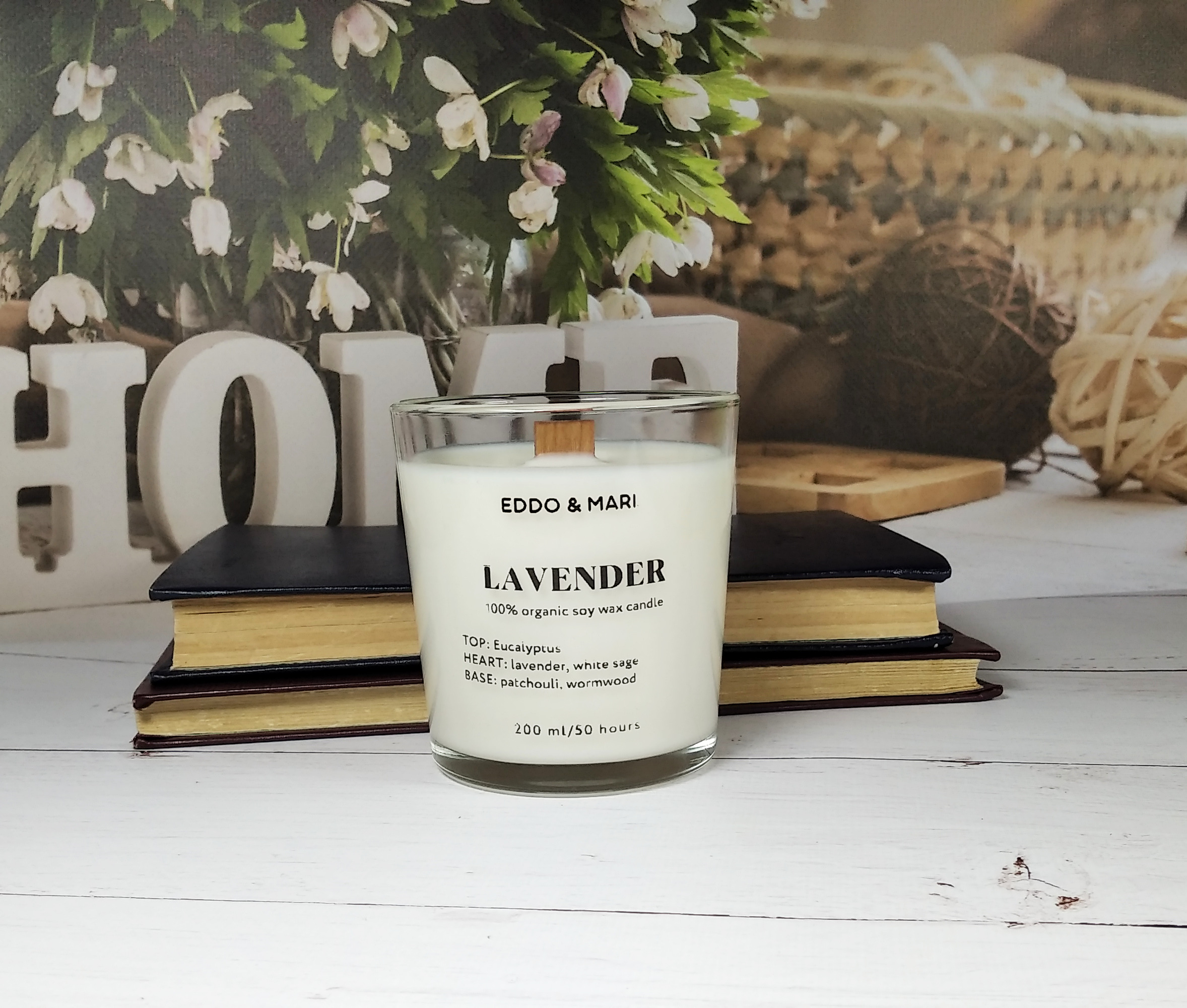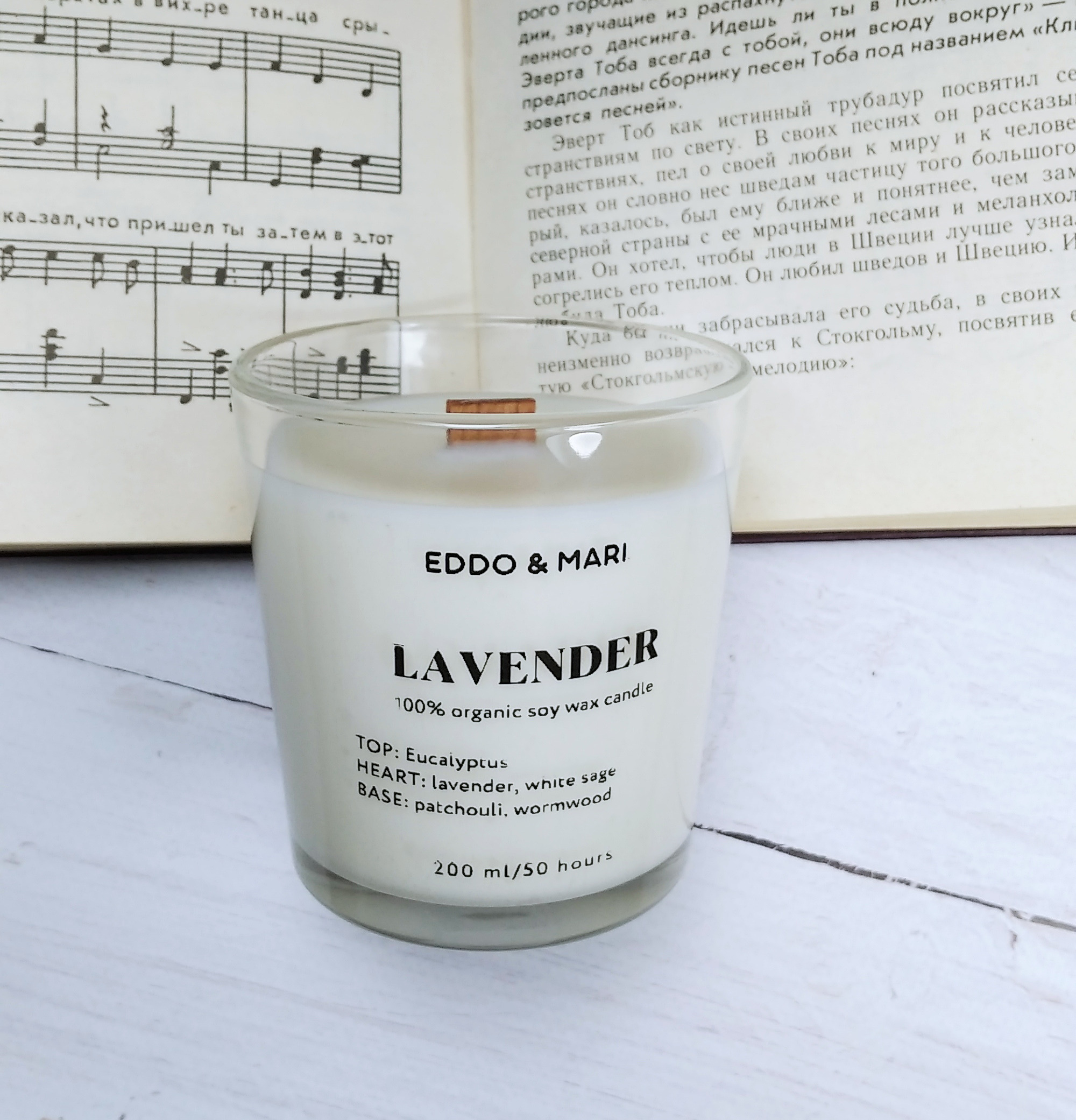 Свеча ароматическая EDDO&MARI "Лаванда"/ в стакане / интерьерная/ 50 часов горения/ древесный фитиль, 1 шт
