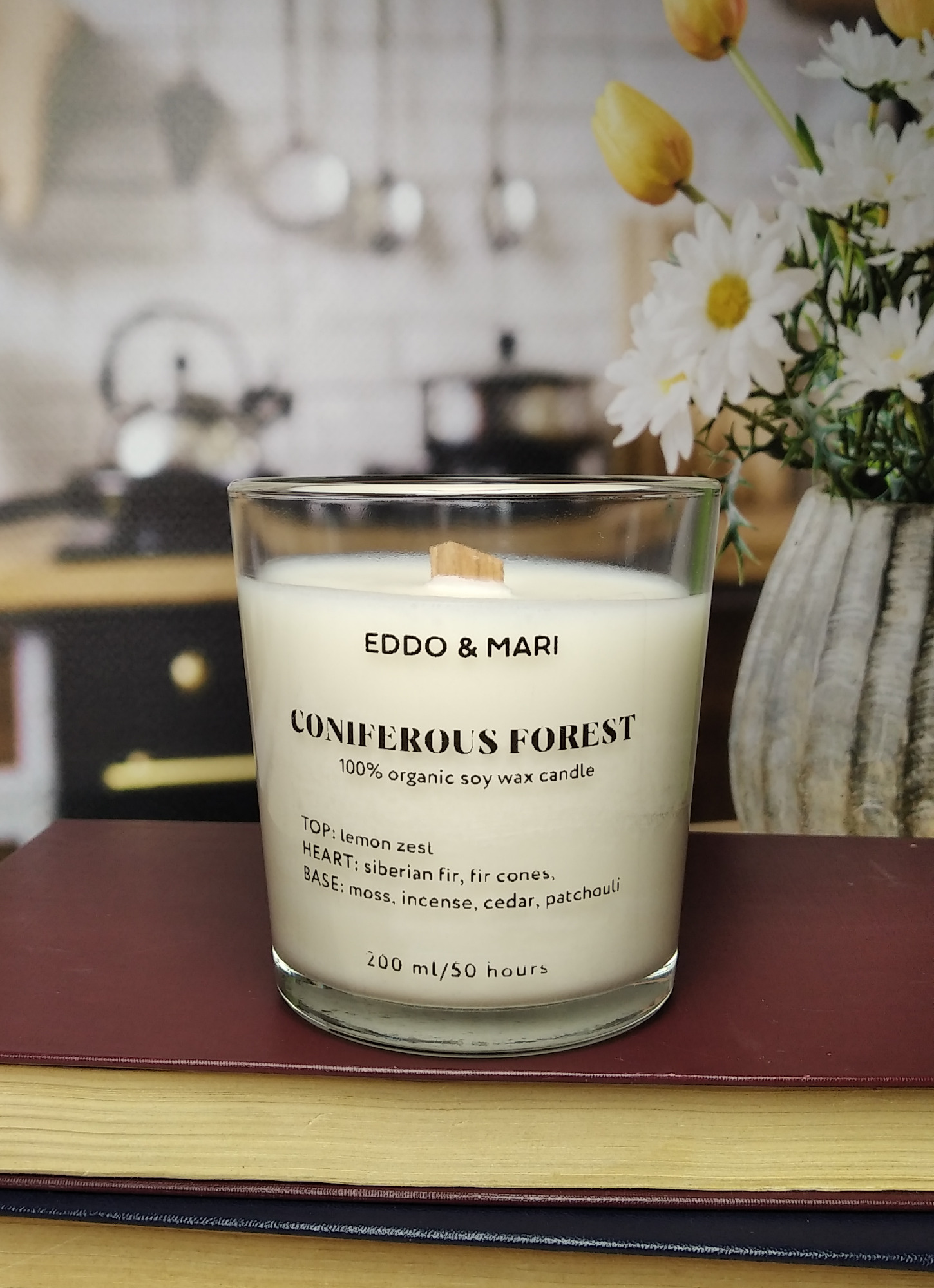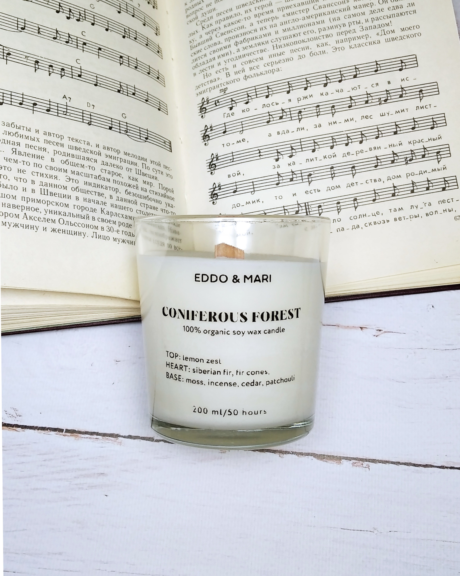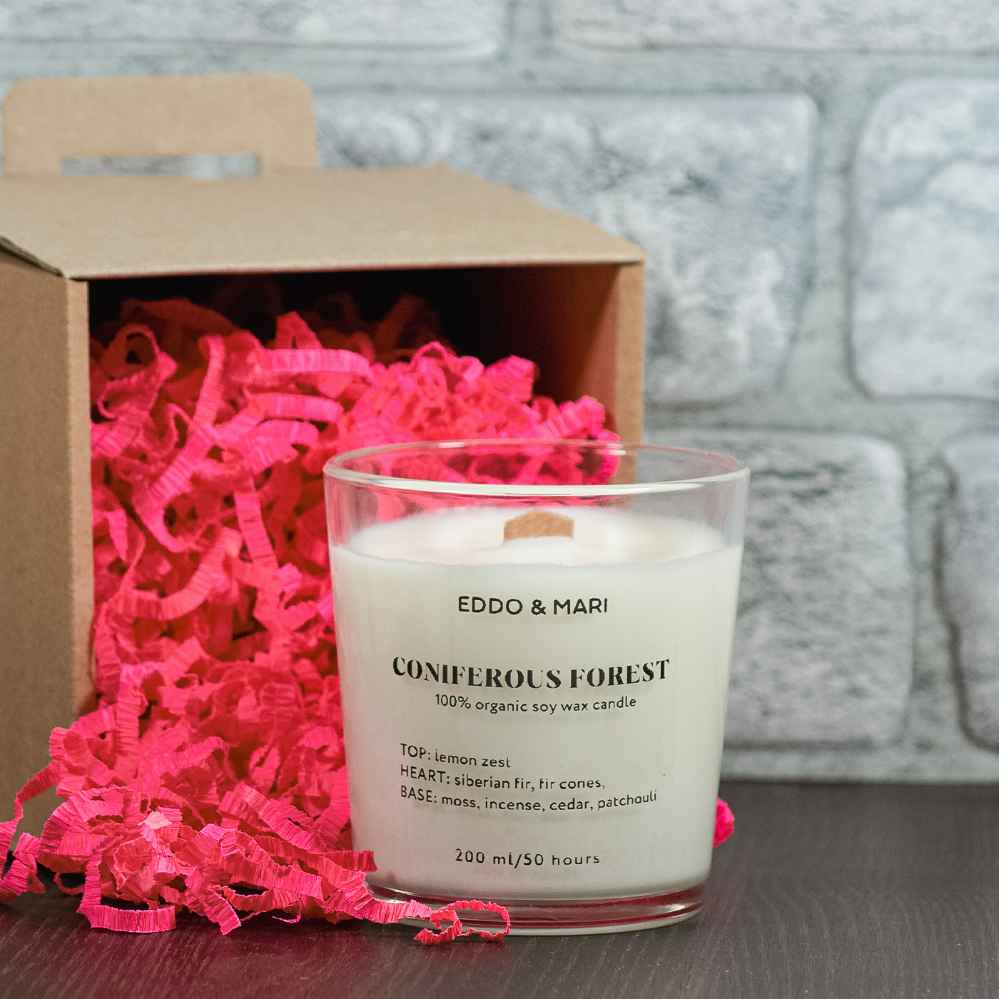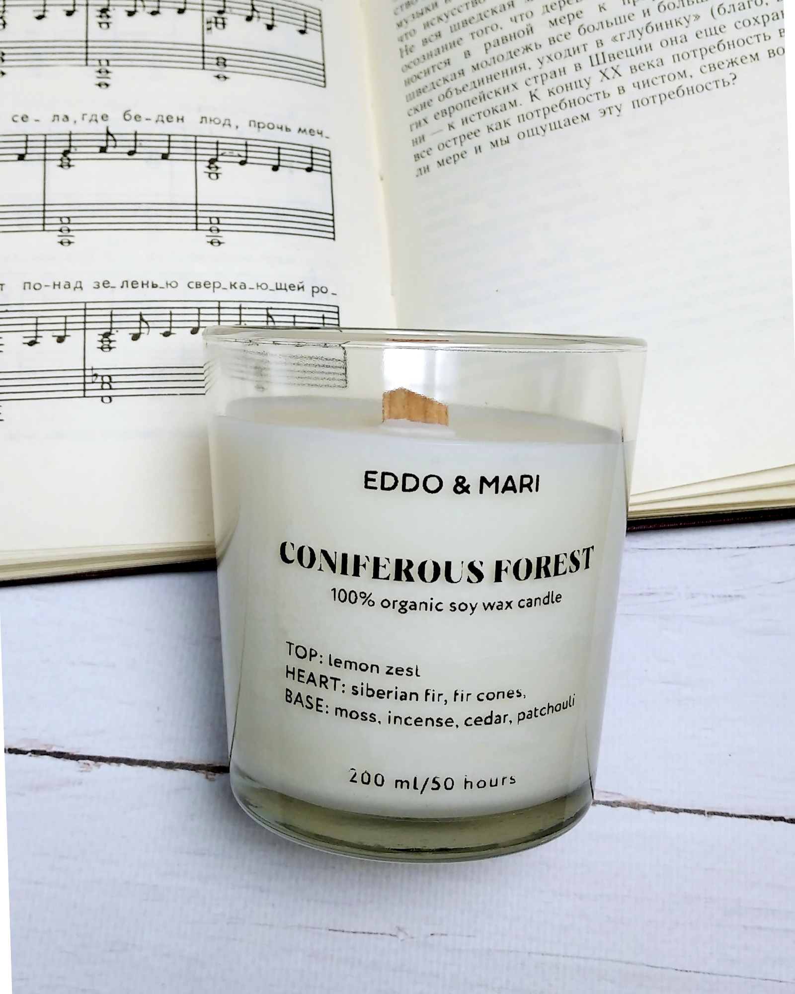 Свеча ароматическая EDDO&MARI "Хвойный лес"/ в стакане / интерьерная/ 50 часов горения/ древесный фитиль, 1 шт