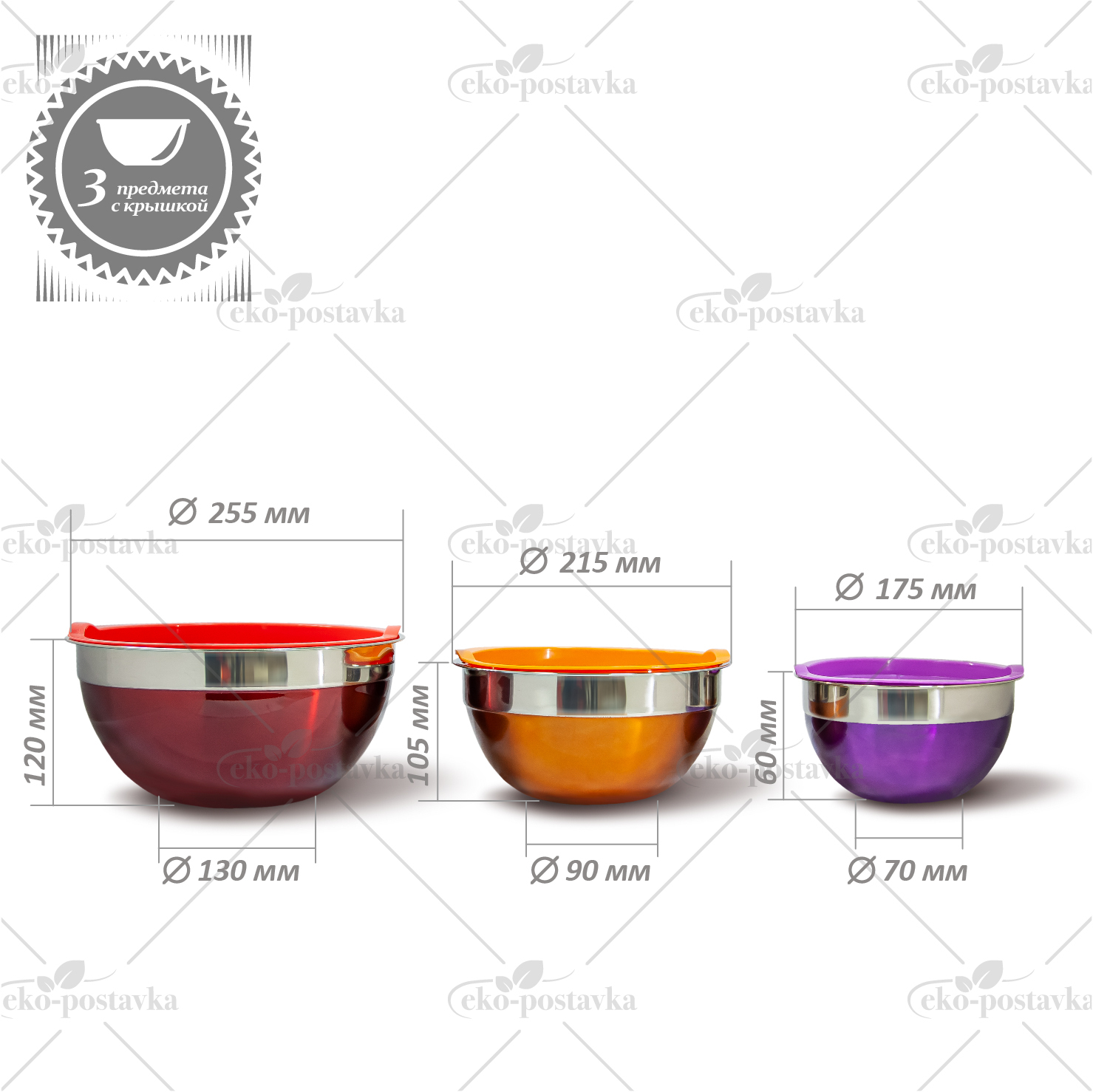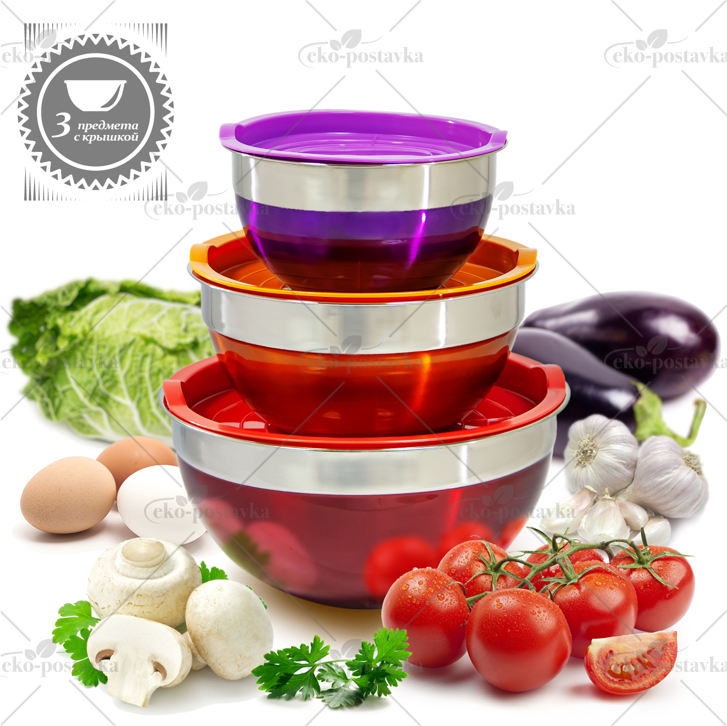 Набор мисок с крышками для хранения и смешивания 3 шт. Уцененный товар