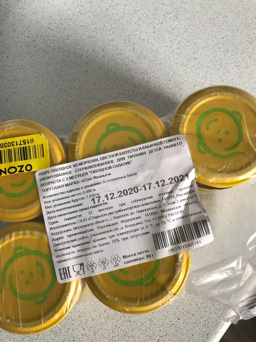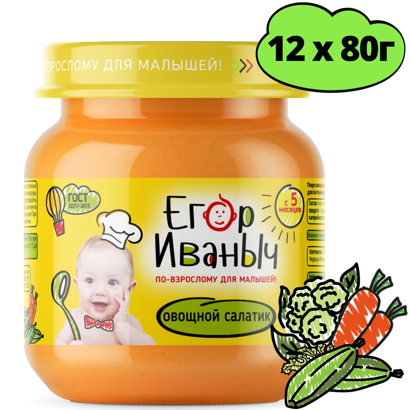 Пюре Егор Иваныч Овощной салатик , с 5 месяцев, 80 г * 12 шт
