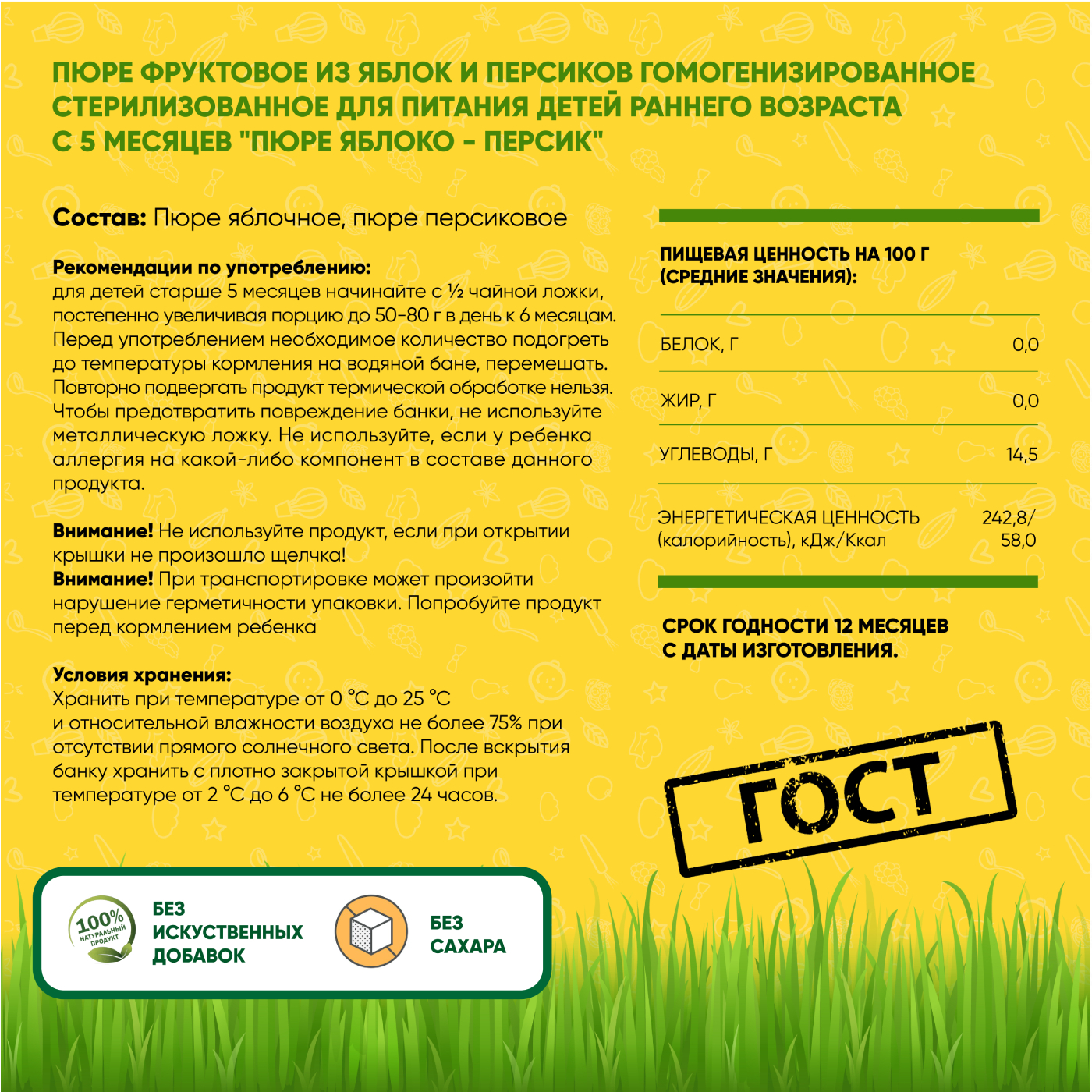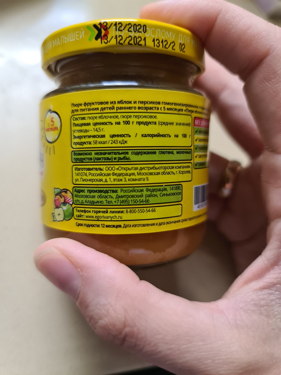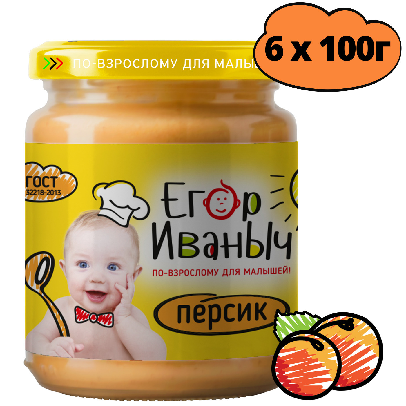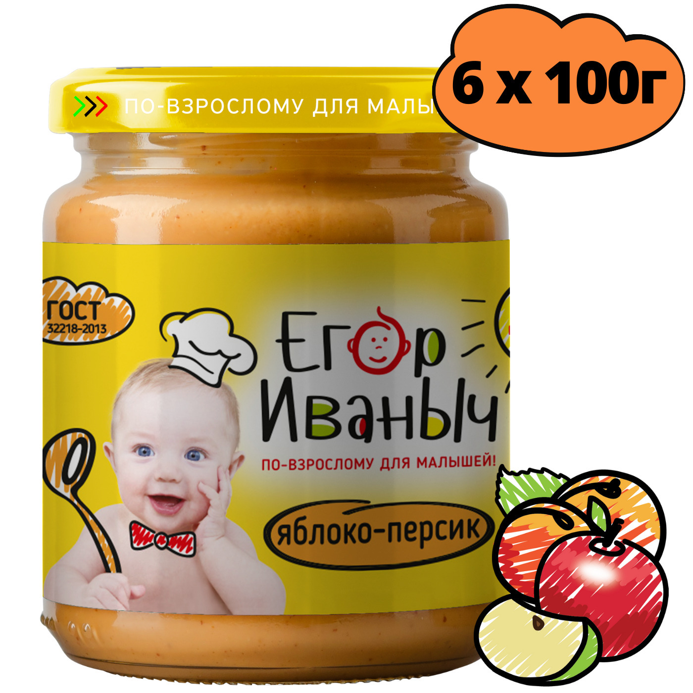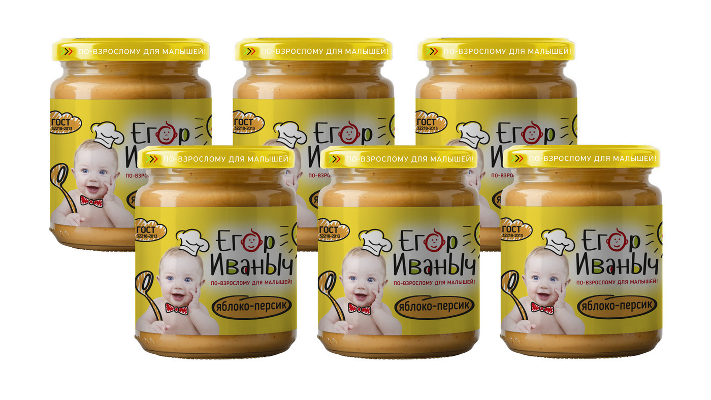 Пюре Егор Иваныч Яблоко и персик , с 5 месяцев, 100 г * 6 шт