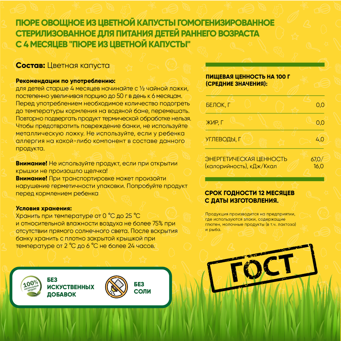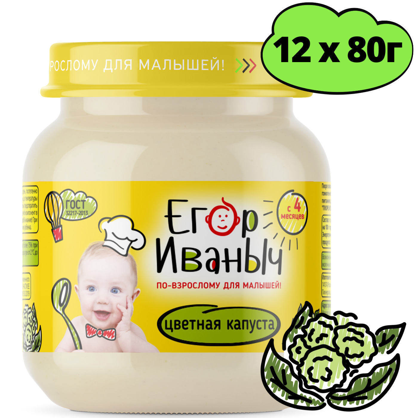 Пюре Егор Иваныч Цветная капуста, с 4 месяцев, 12 шт по 80 г