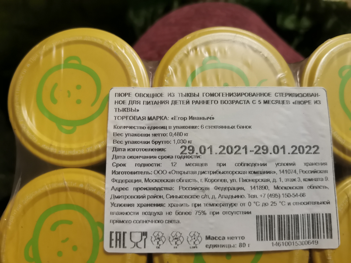 Пюре Егор Иваныч тыква (с 5 месяцев) 80 г, 6 шт