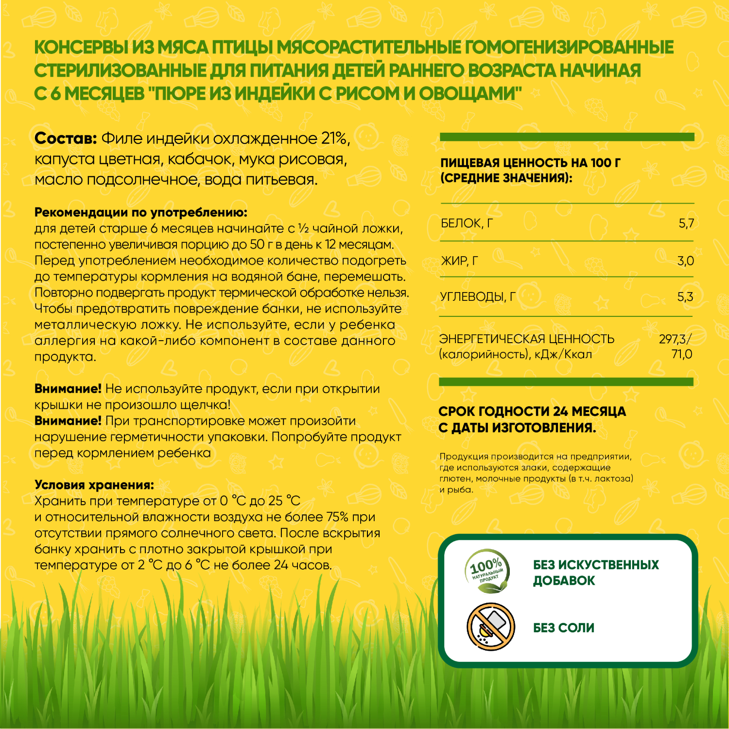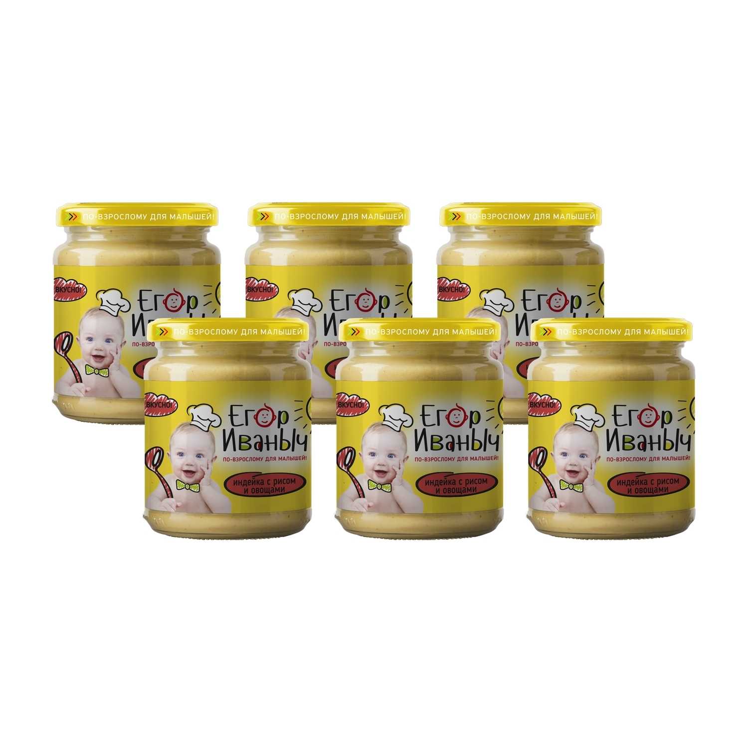 Пюре Егор Иваныч индейка с рисом и овощами (с 6 месяцев) 100 г, 6 шт.