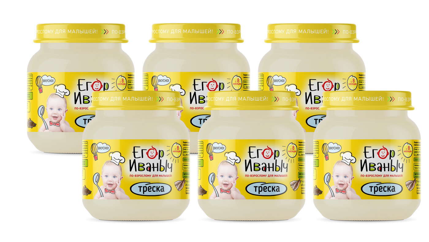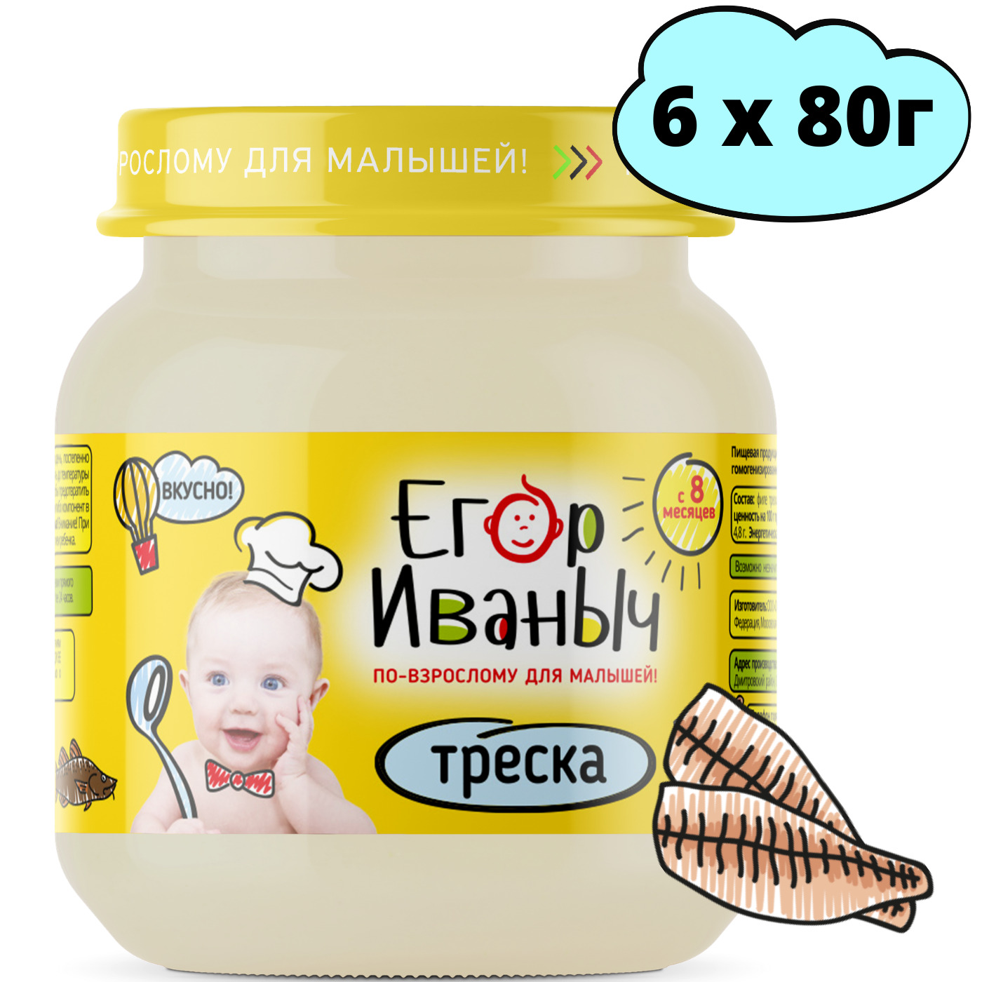 Пюре Егор Иваныч Треска, с 8 месяцев , 6 шт по 80 г