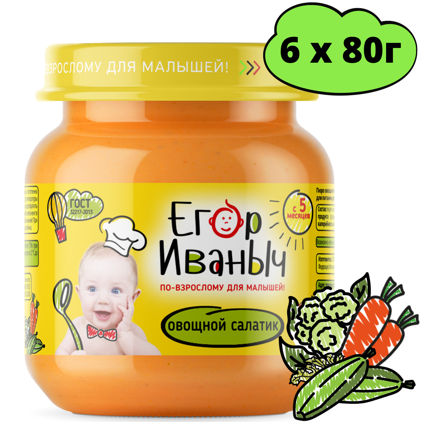 Пюре Егор Иваныч Овощной салатик , с 5 месяцев, 80 г * 6 шт