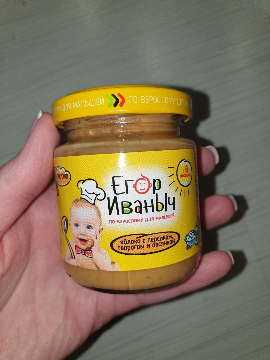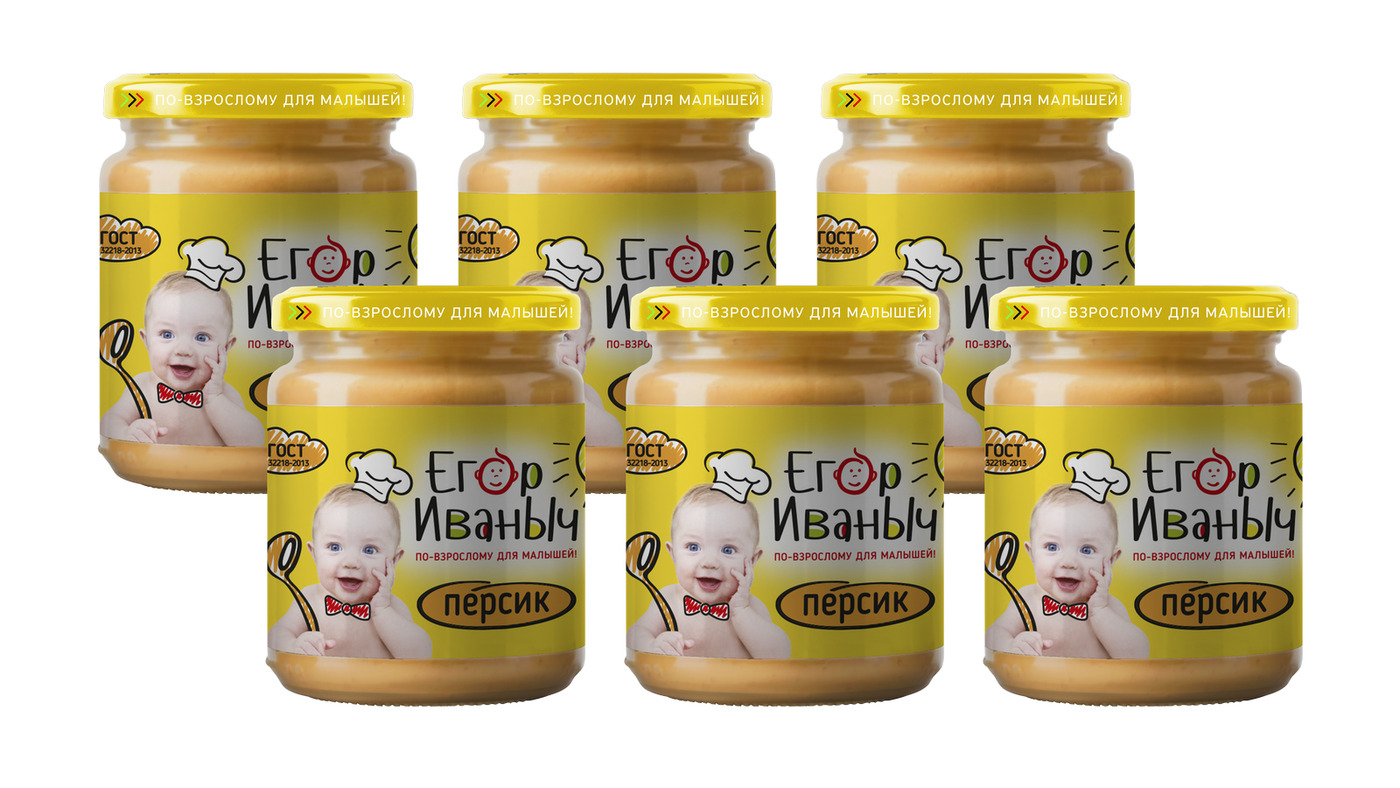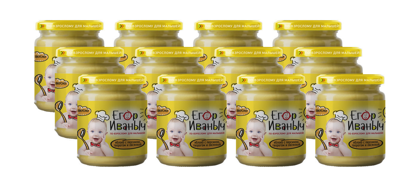 Пюре Егор Иваныч Яблоко с персиком, творогом и овсянкой, с 6 месяцев, 100 г * 12 шт
