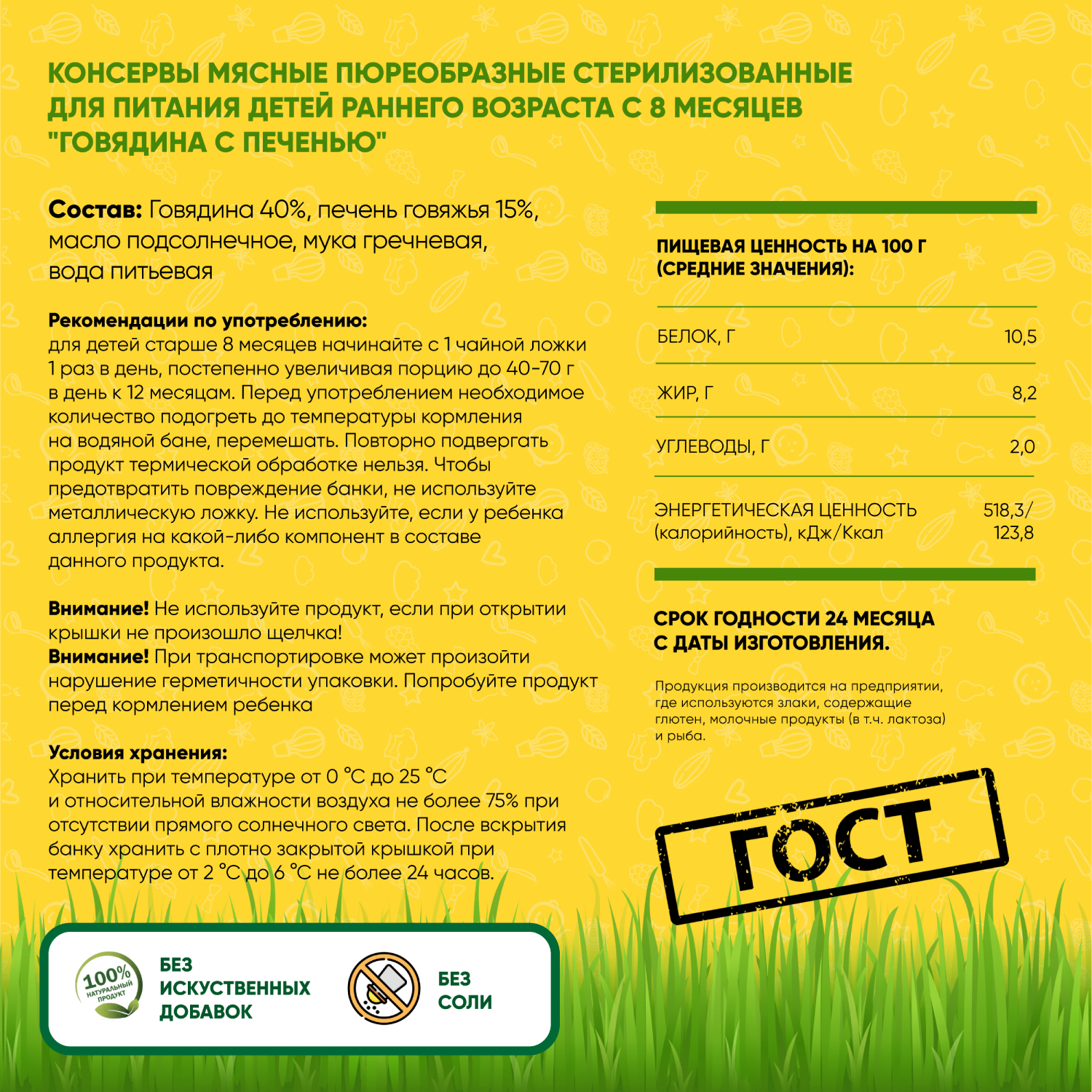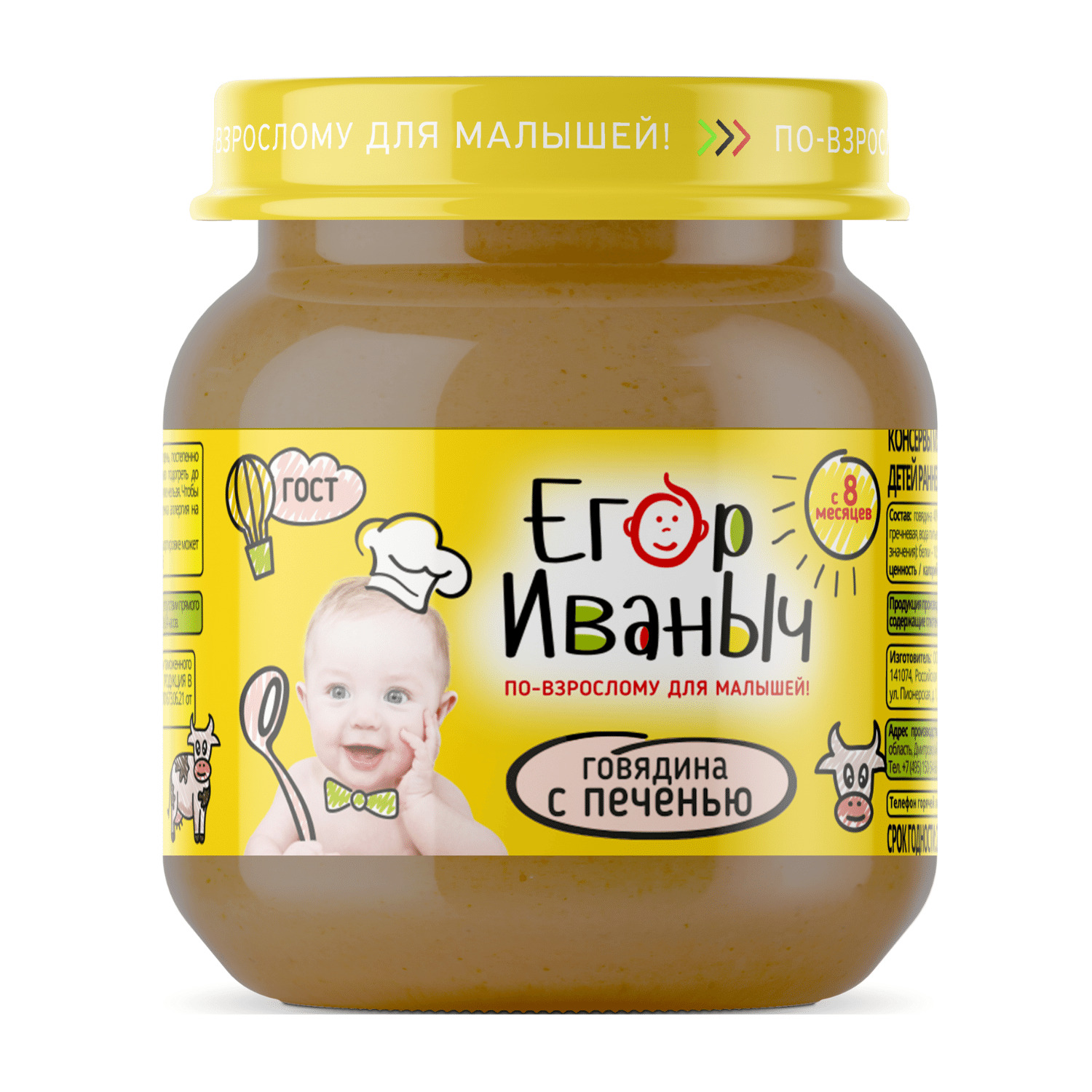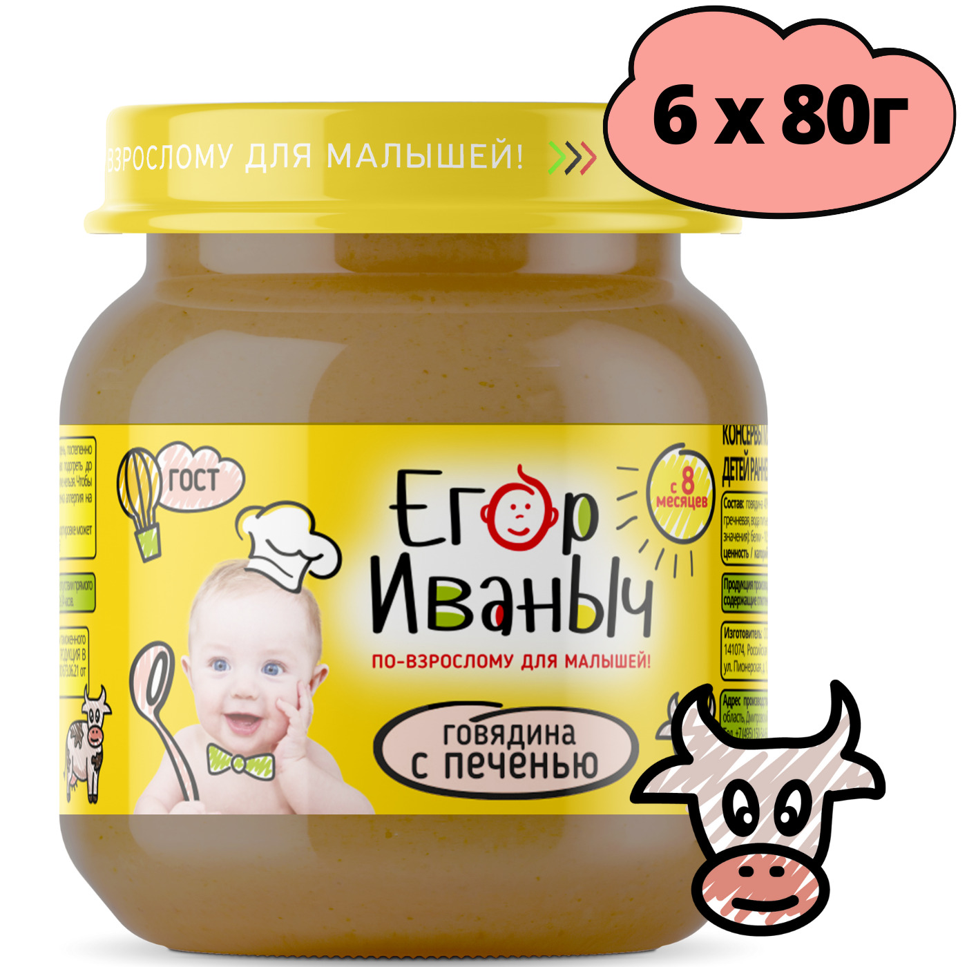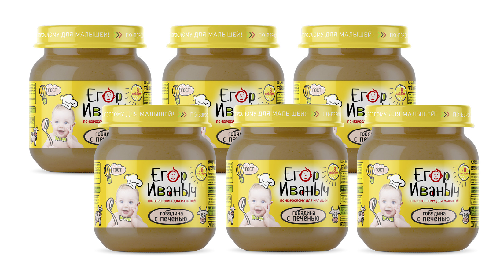 Пюре Егор Иваныч Говядина с печенью, с 8 месяцев , 6 шт.
