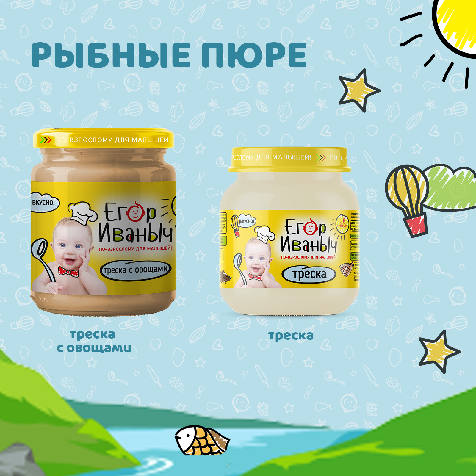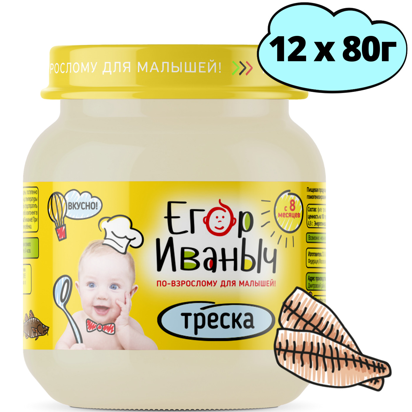 Пюре Егор Иваныч Треска, с 8 месяцев 12 шт по 80 г