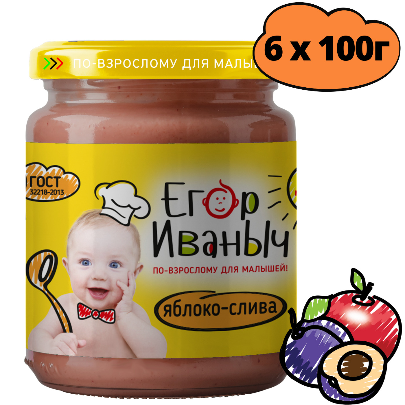 Пюре Егор Иваныч Яблоко и слива , с 5 месяцев, 100 г * 6 шт