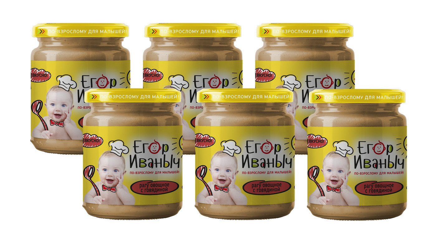 Пюре Егор Иваныч Рагу овощное с говядиной , с 6 месяцев, 100 г * 6 шт