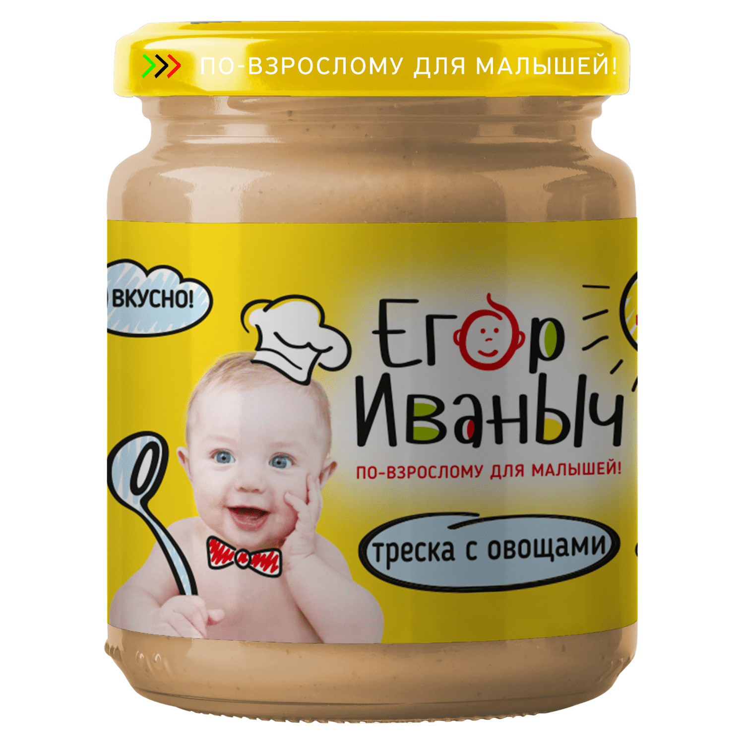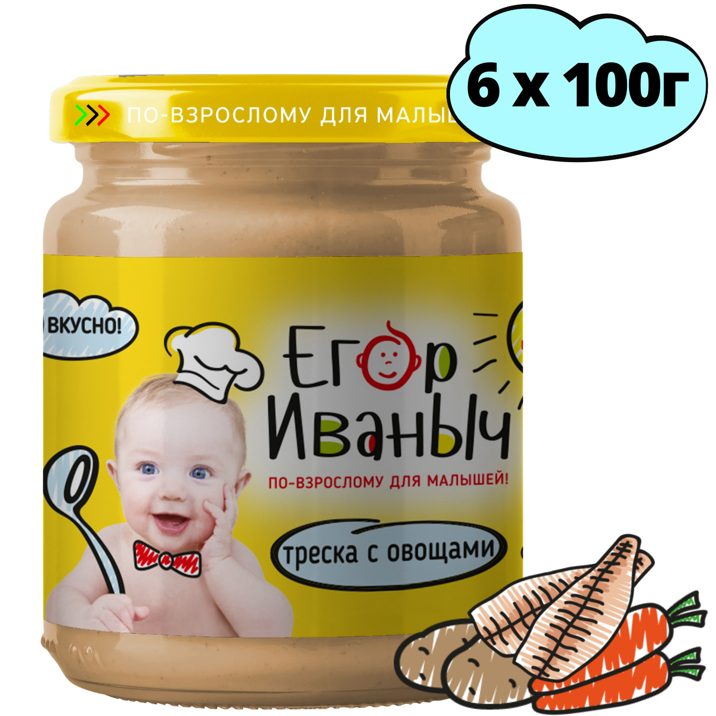 Пюре Егор Иваныч Треска с овощами , с 8 месяцев, 100 г * 6 шт