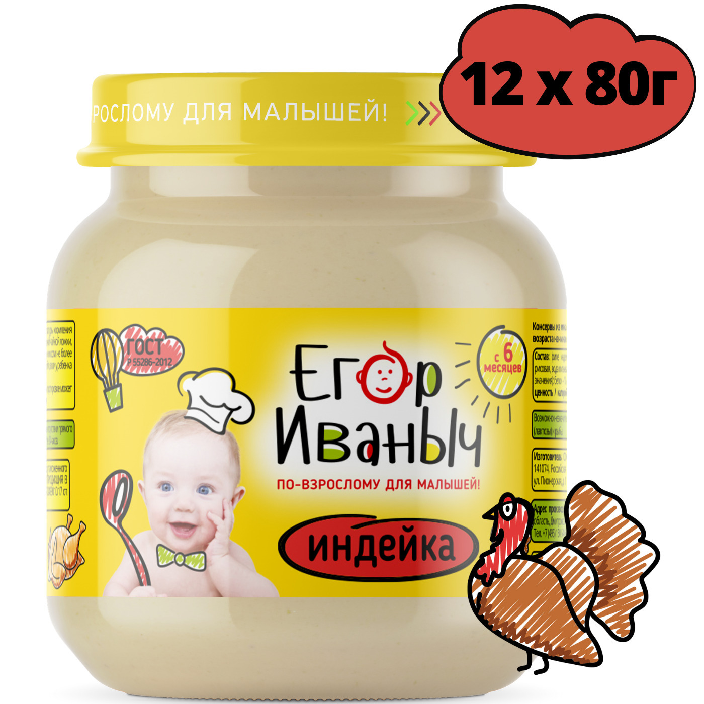 Пюре Егор Иваныч Индейка, с 6 месяцев, 12 шт * 80 г