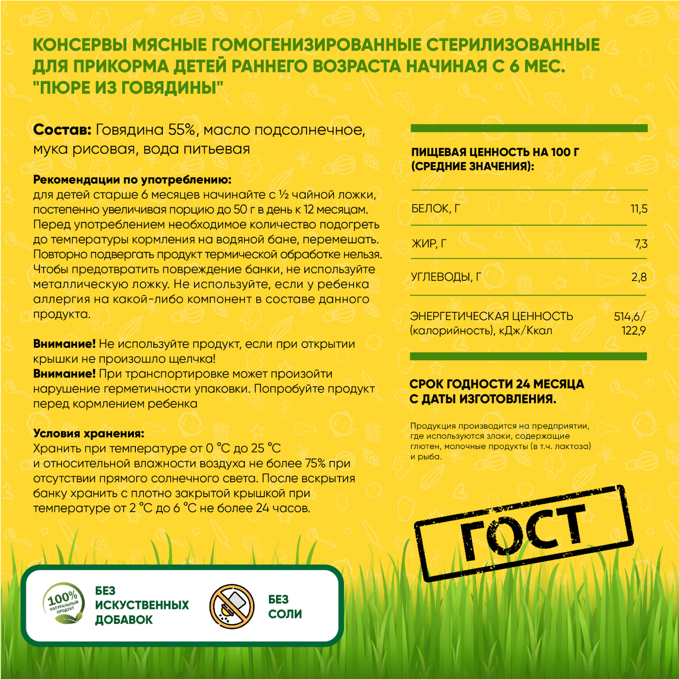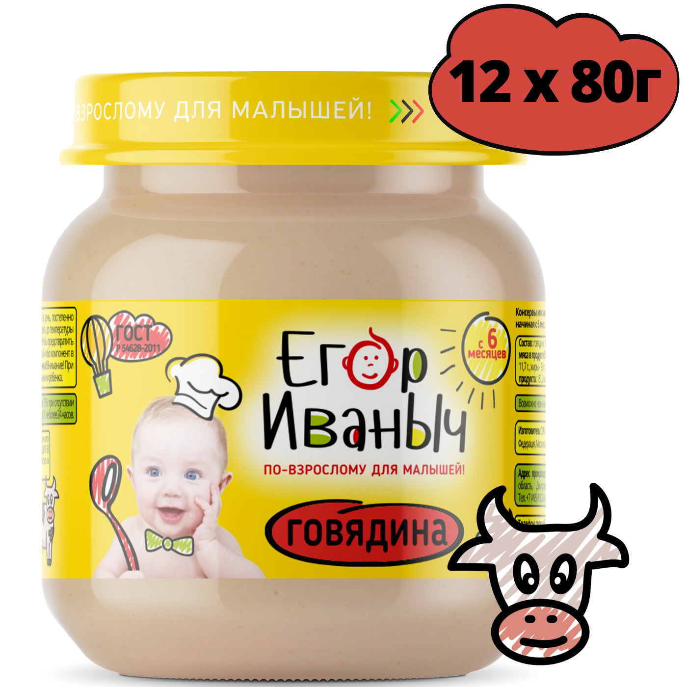 Пюре Егор Иваныч Говядина, с 6 месяцев, 12 шт * 80 г