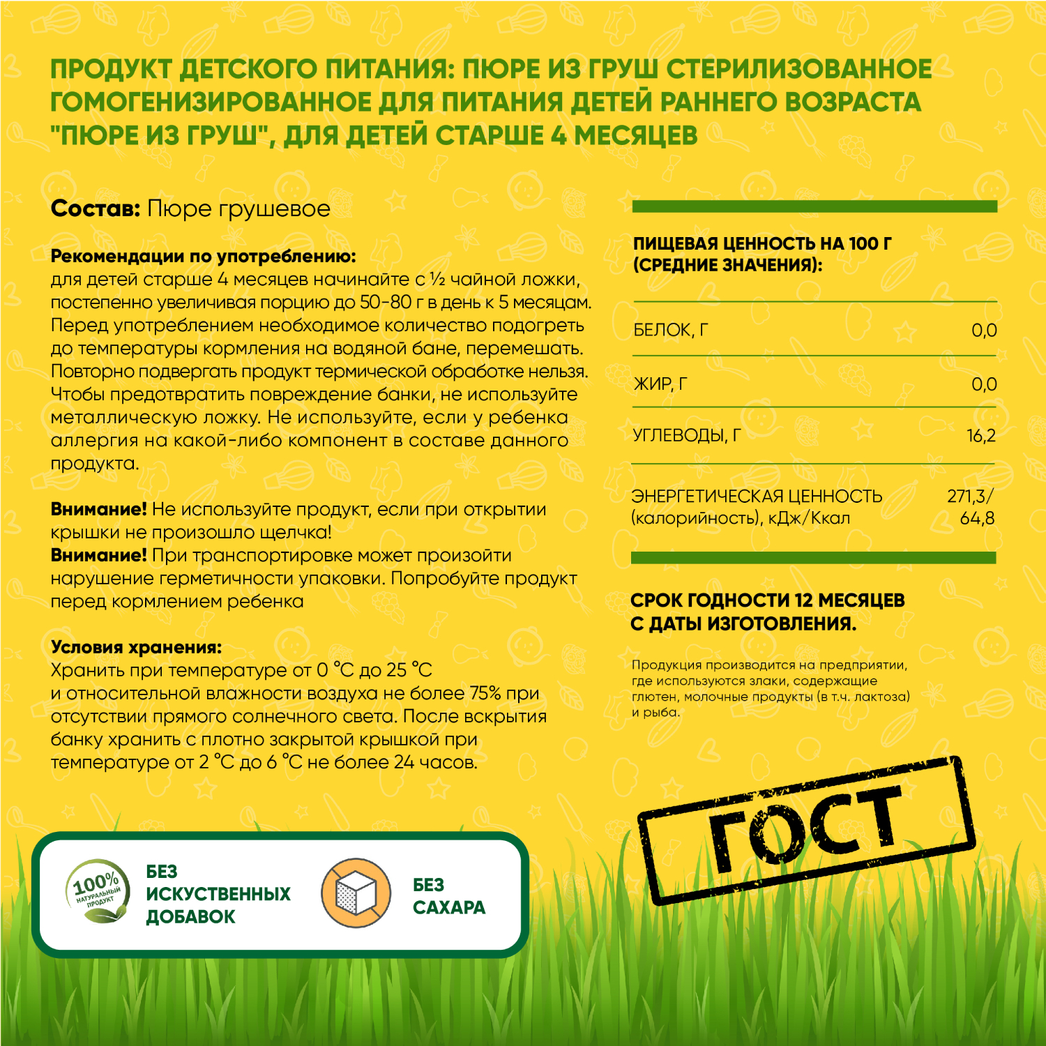 Пюре Егор Иваныч Груша, с 4 месяцев, 6 шт по 100 г