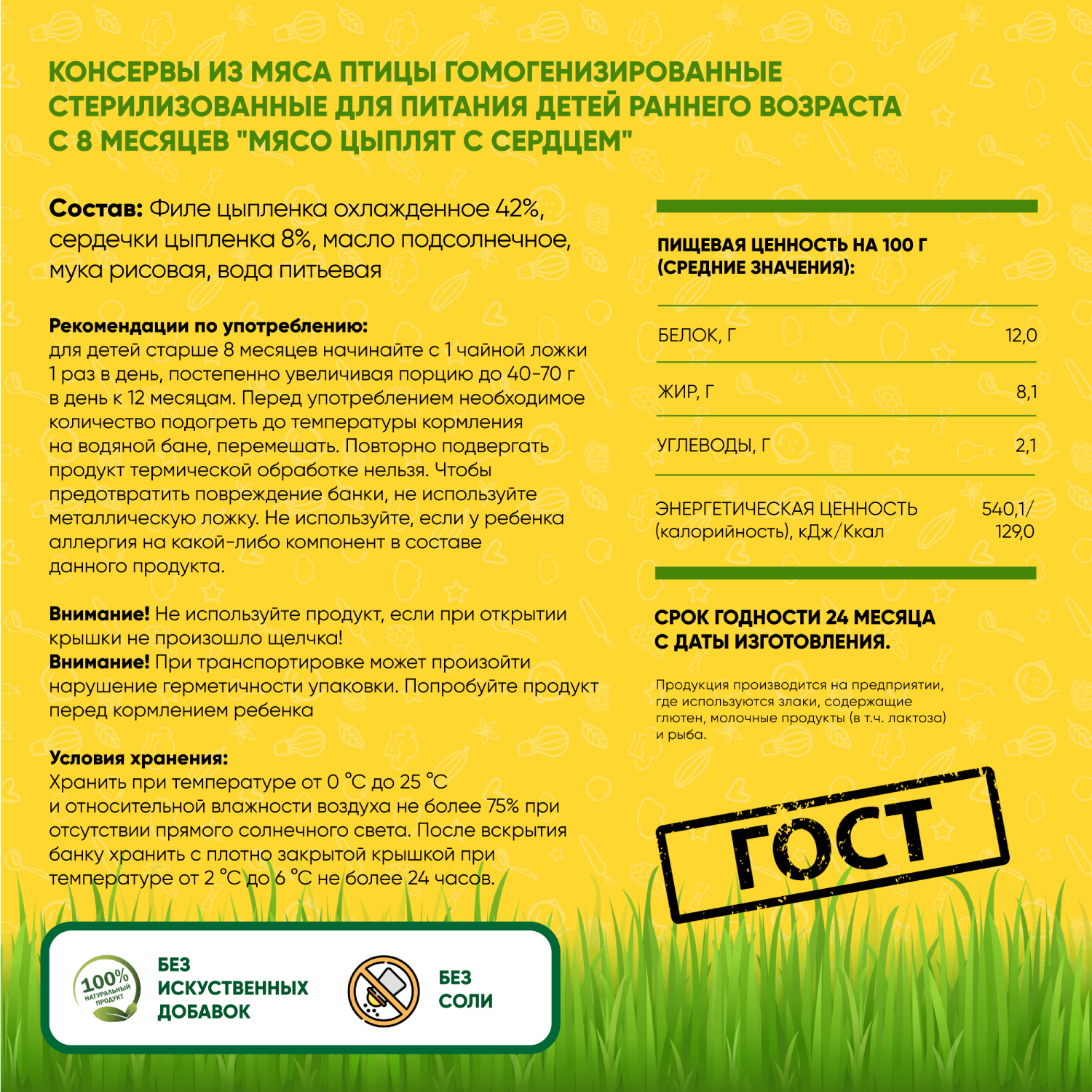 Пюре Егор Иваныч Цыпленок с сердечками, с 8 месяцев , 12 шт.