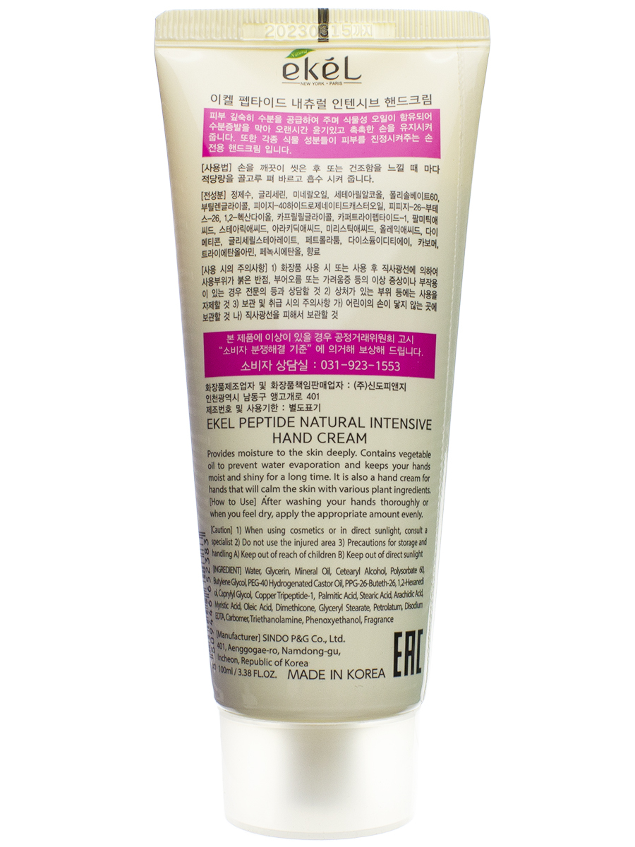 EKEL Крем для рук антивозрастной с Пептидами Natural Intensive Hand Cream Peptide, 100 мл