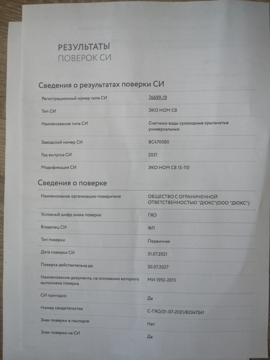 Счётчик холодной воды ЭКО НОМ 40Х-300 1 ½"