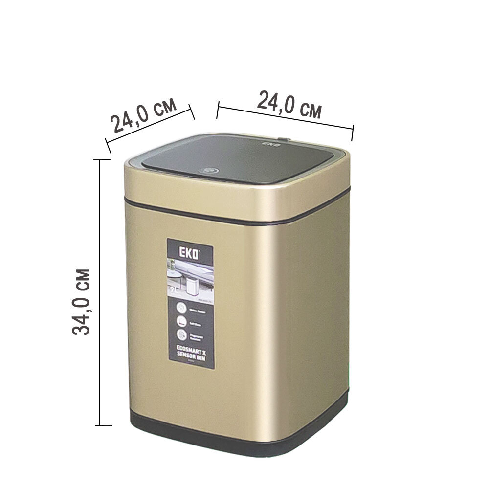 Мусорное ведро 12 литров EKO, сенсорное, благородная нержавеющая сталь