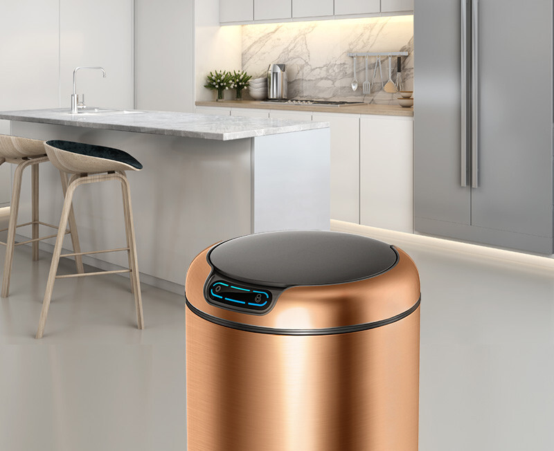 Мусорное ведро 50 литр EKO, сенсорное, благородная нержавеющая сталь, ЗОЛОТАЯ ШАМПАНЬ