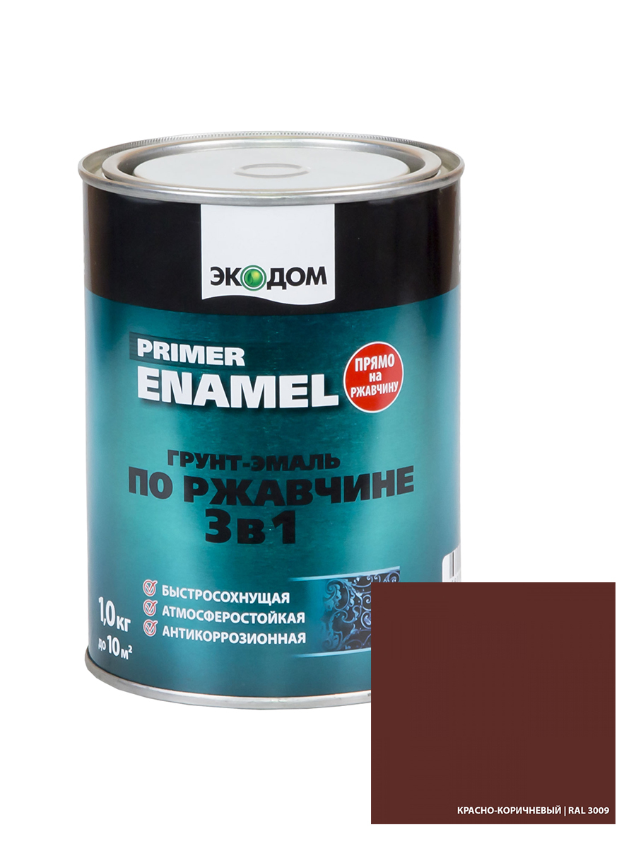 Грунт-эмаль ЭКОДОМ 3 в 1 Быстросохнущая, Полуматовое покрытие, 1 кг, коричнево-красный