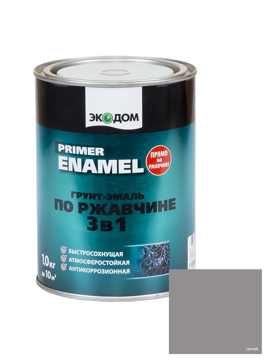 Грунт-эмаль ЭКОДОМ 3 в 1 Быстросохнущая, Полуматовое покрытие, 1 кг, серый