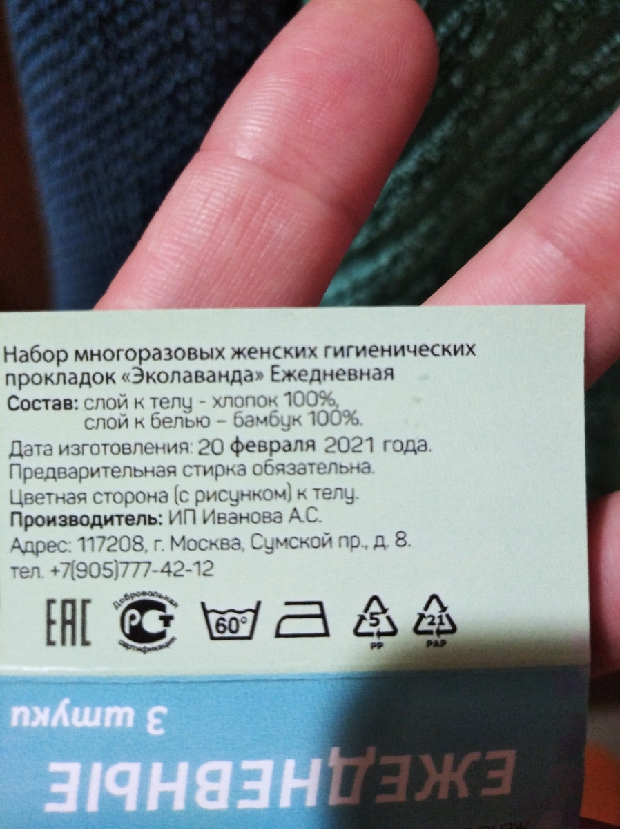 Многоразовые гигиенические прокладки Эколаванда, Набор "Комфортный сон", 2 шт.