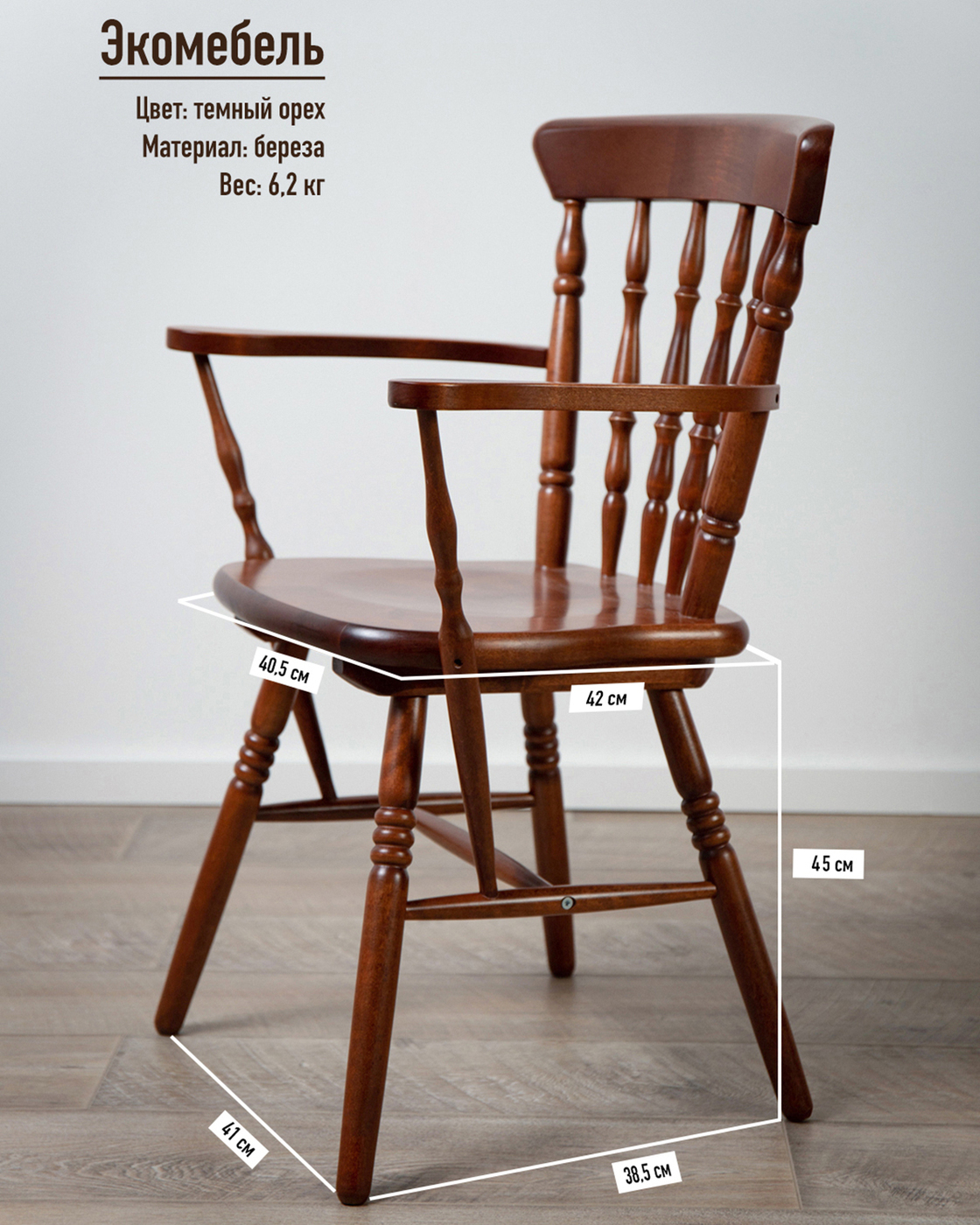 Стул из массива дерева с подлокотниками "Классика" Тёмный орех, 1 шт.