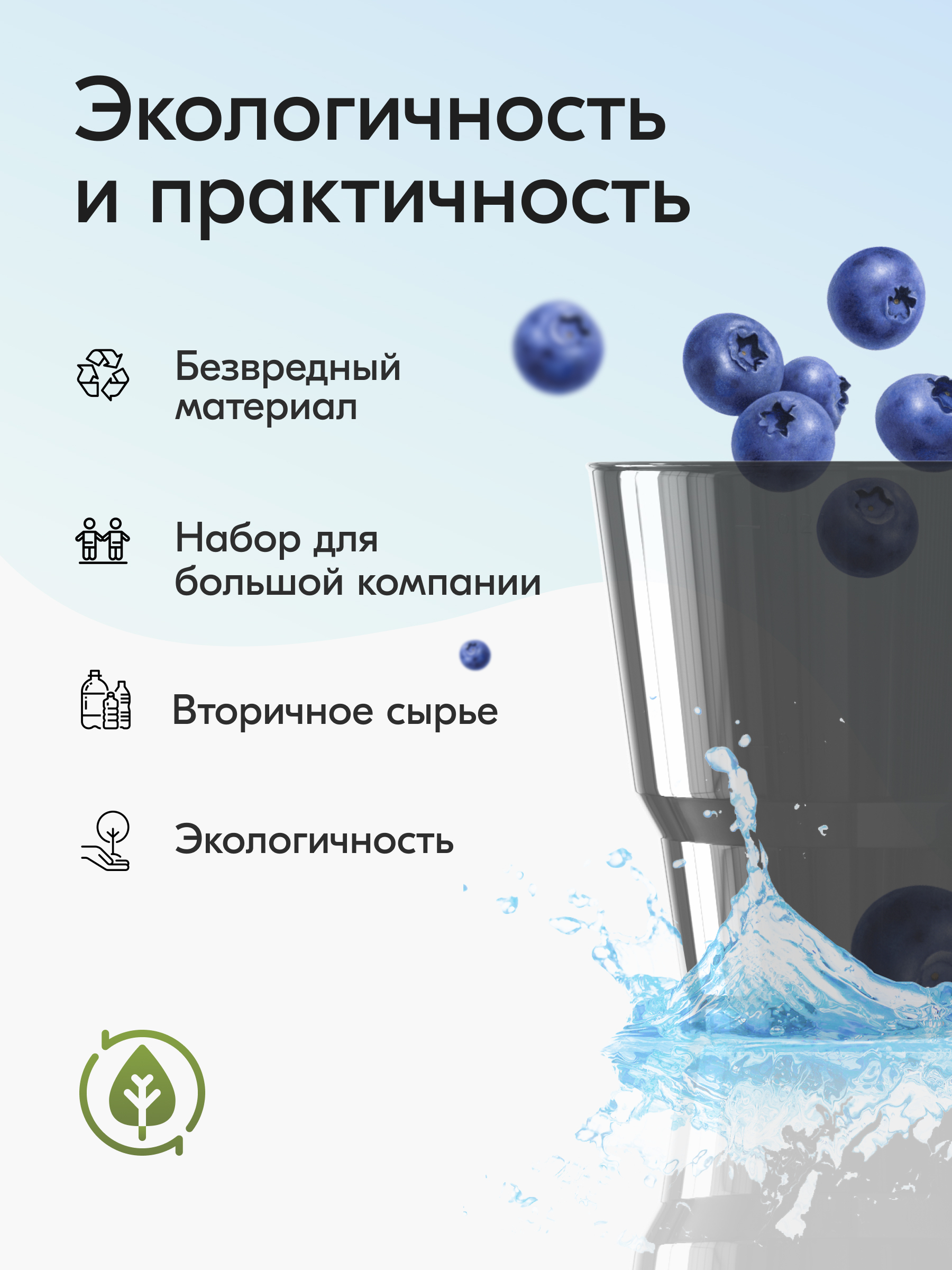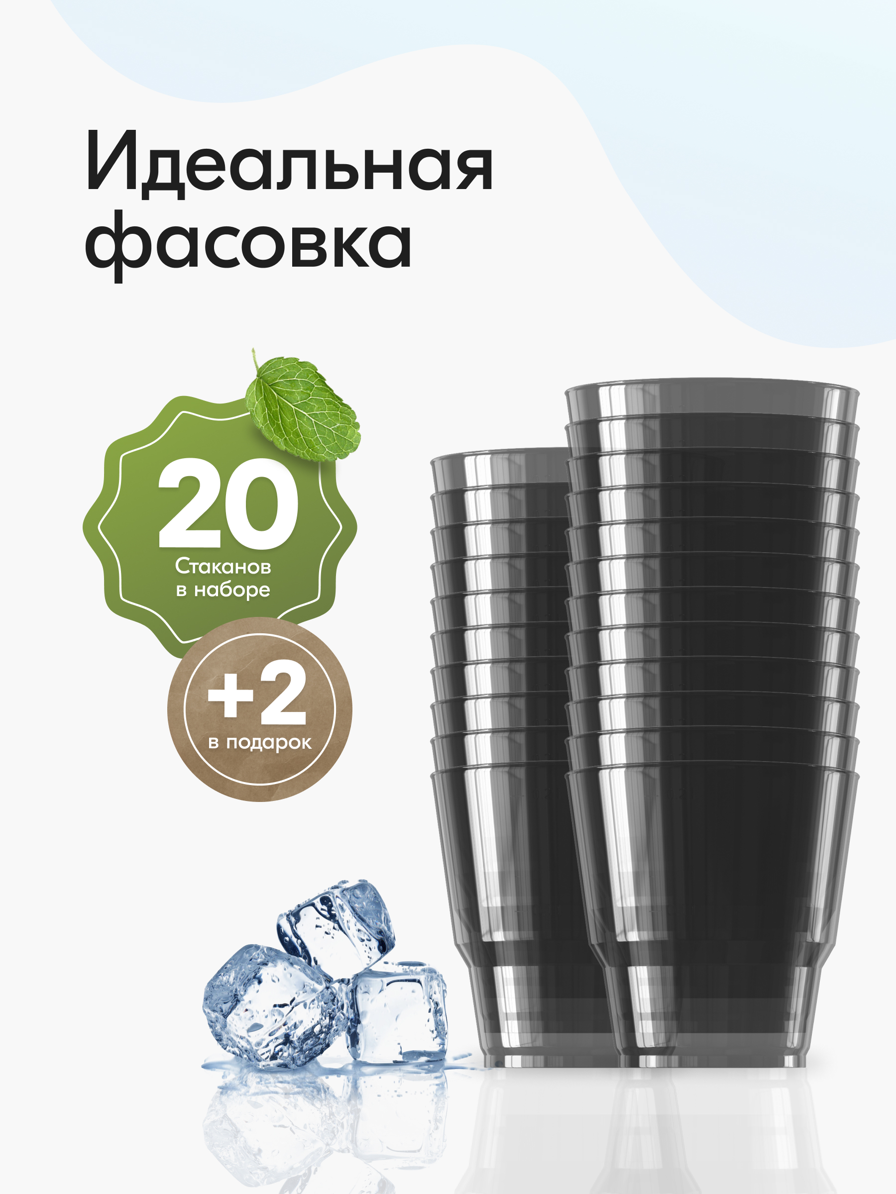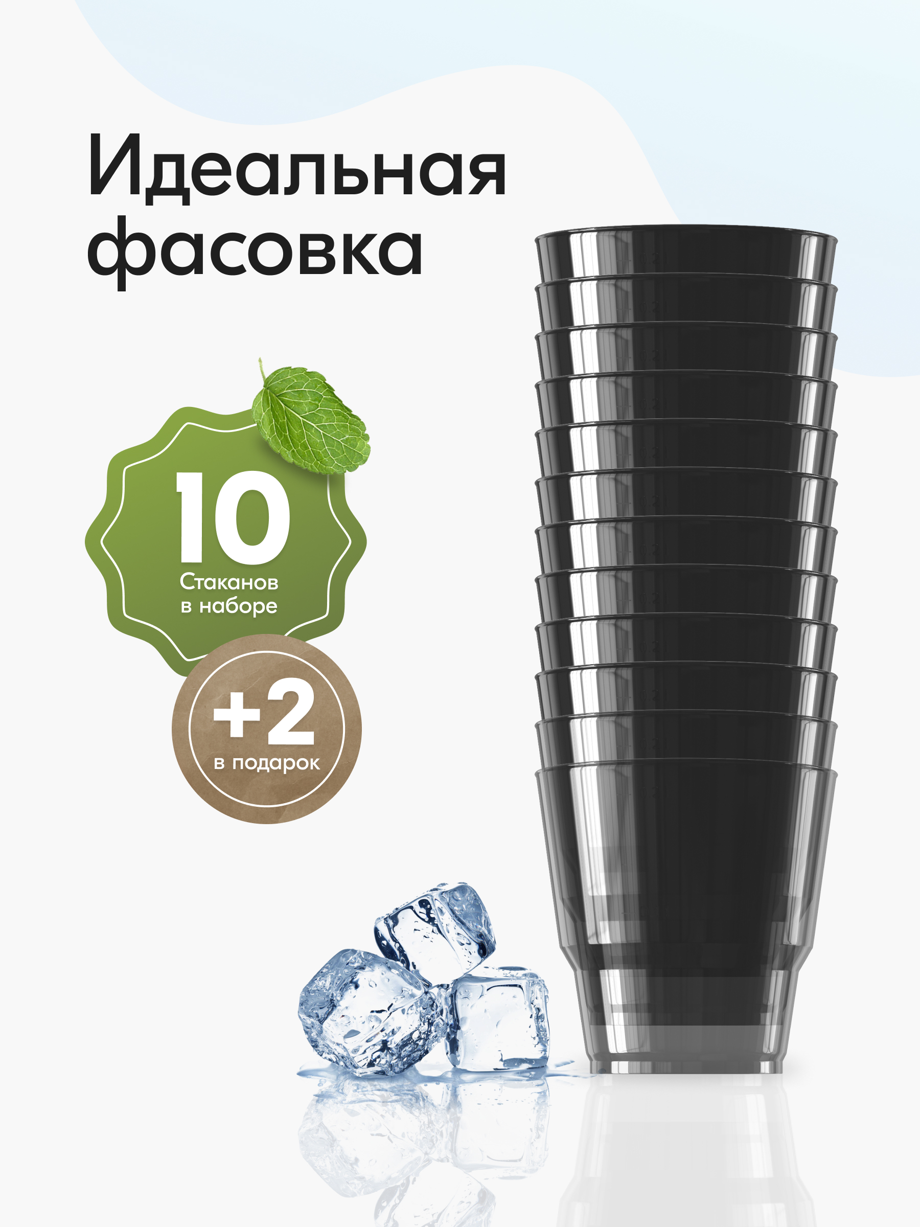 52 шт / 200 мл набор одноразовых черных пластиковых стаканчиков для кофе, чая, прохладительных напитков, десертов и рассады 1 сорт Экопакпласт