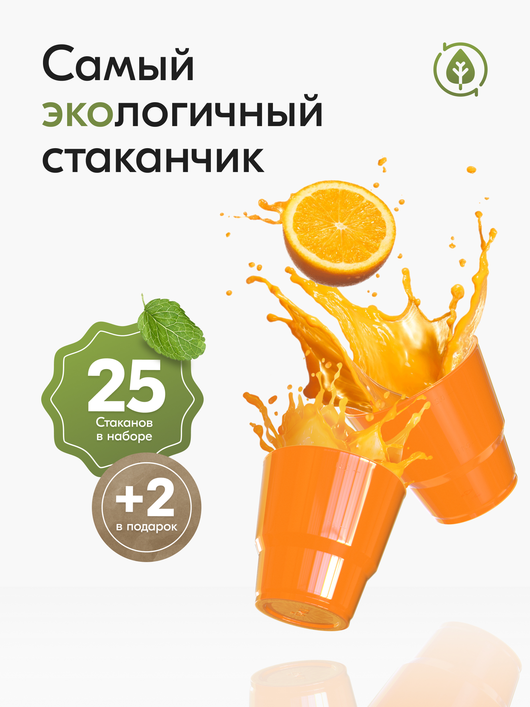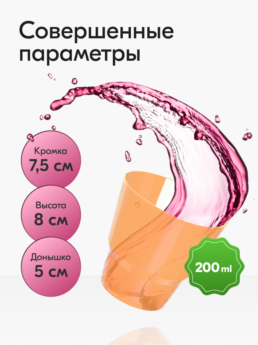 104 шт желтые пластиковые стаканы 200 мл Экопакпласт