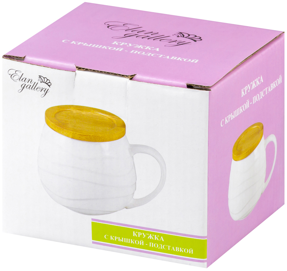 Кружка, Чашка чайная Elan Gallery "Айсберг волны бочонок с крышкой-подставкой", 400 мл, 1 шт