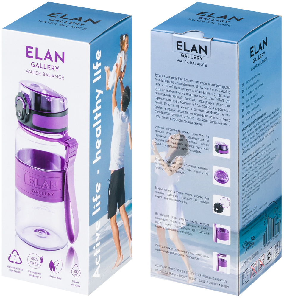 Спортивная бутылка,280096Elan Gallery,0.35л.,сиреневый, прозрачный