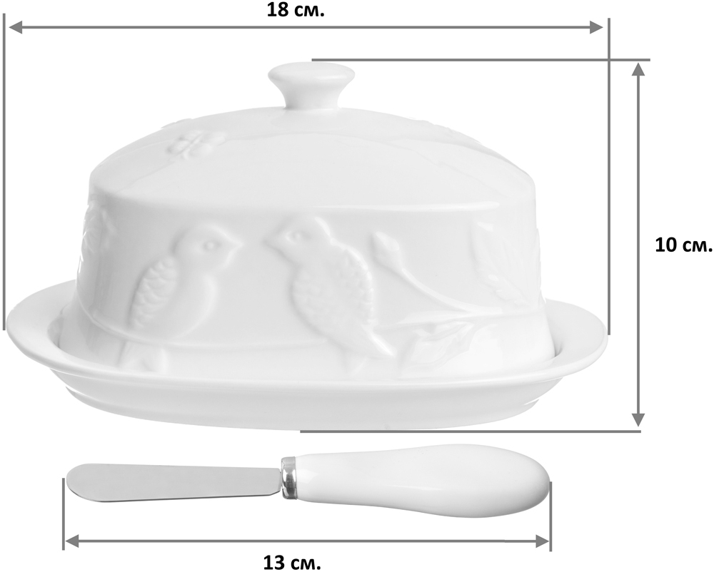 Масленка Elan Gallery "Птички на ветке, с ножом", 18х13х10 см, 1 шт