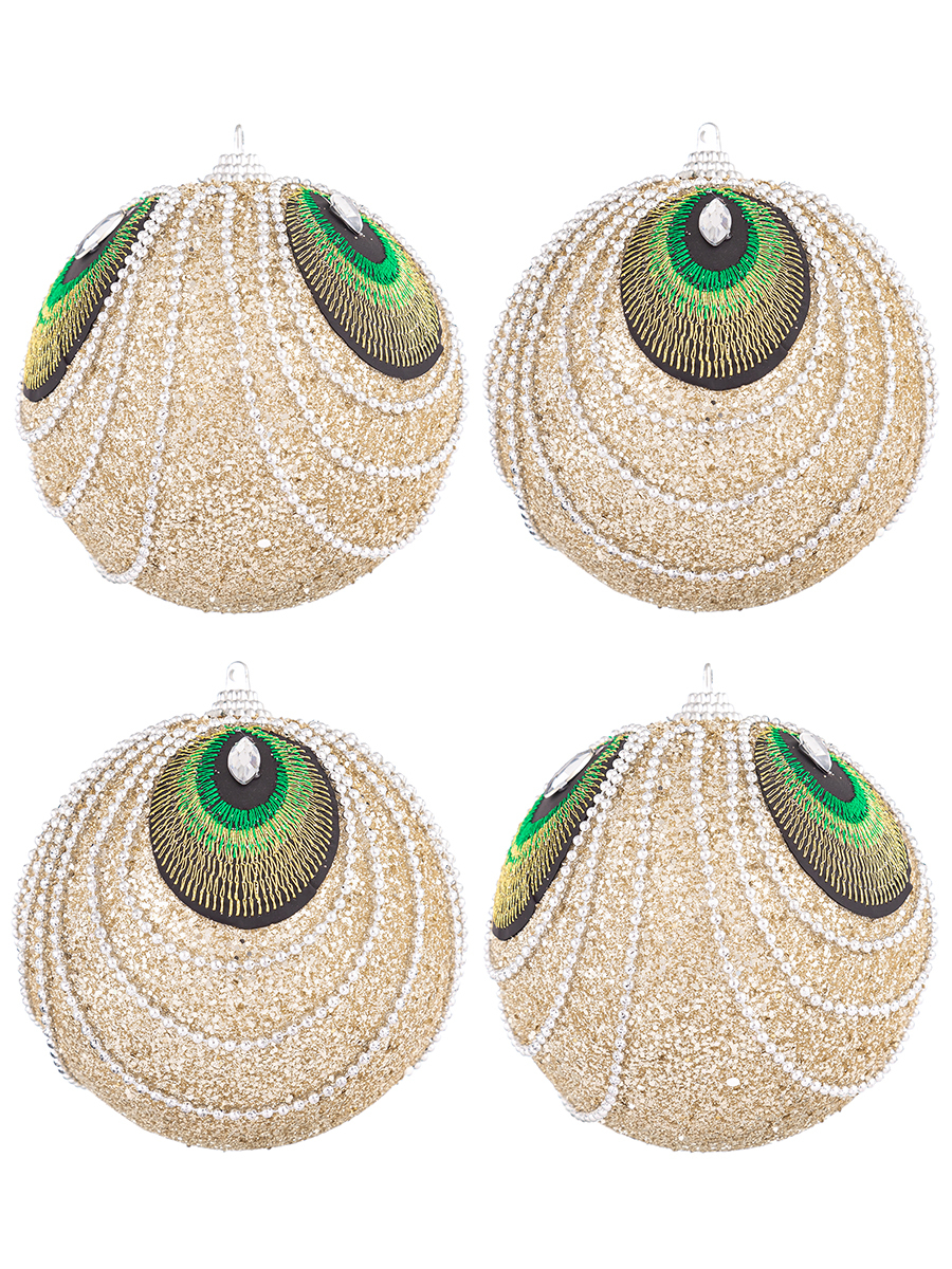 Набор ёлочных украшений, Ёлочная игрушка 9,5х9,5 см Павлин шампань Elan Gallery 4 шт.