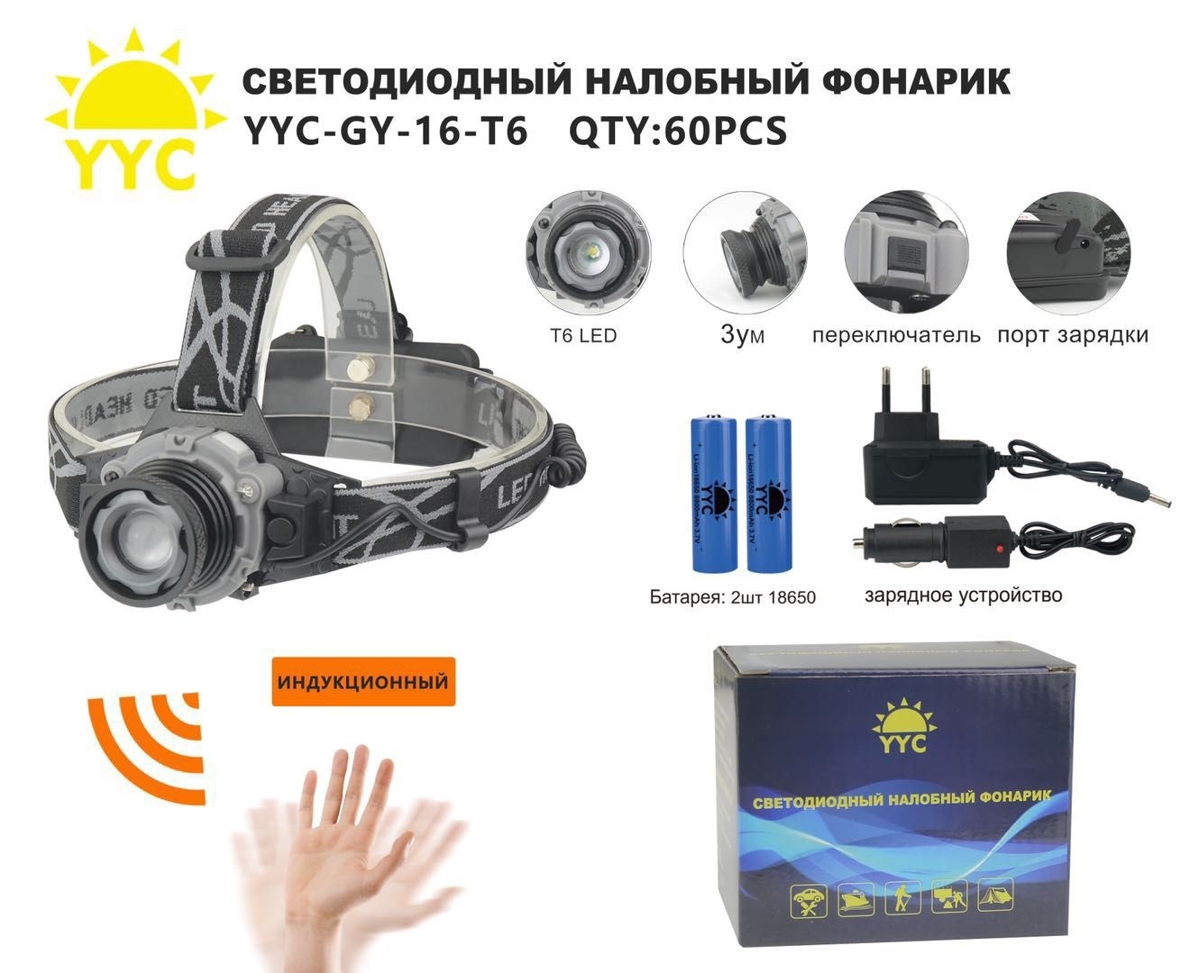 Налобный фонарь светодиодный Electroshop YYC-907-T6 (Новинка 2021!)
