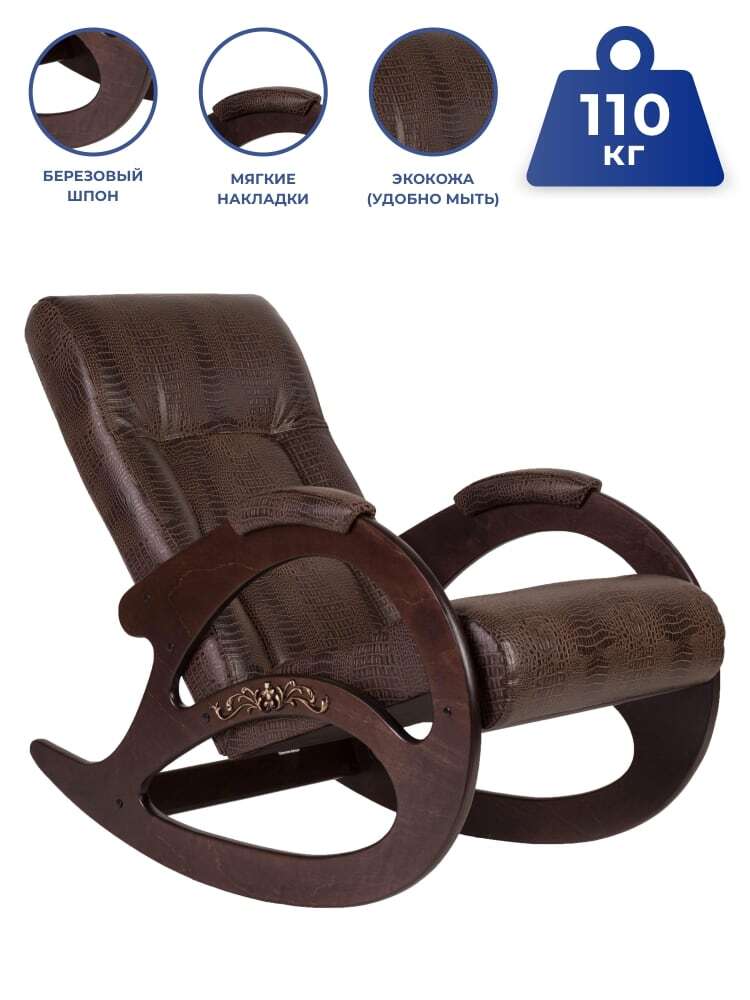 Кресло-качалка Elewood Тенария, 1 - каркас темный тон + экокожа коричневый крокодил