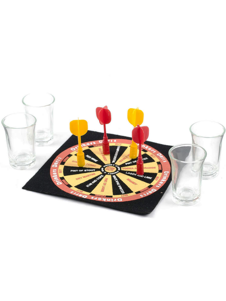 Игра "Пьяный дартс", 4 рюмки 50 мл, 6 дротиков на магнитах и магнитная мишень 17,5х17,5 см.