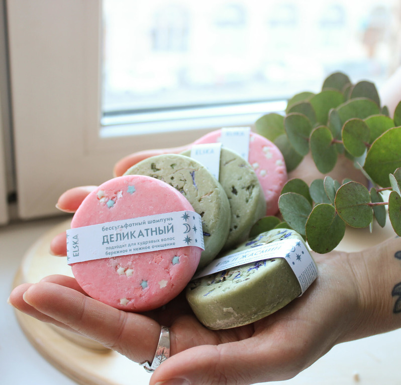 ELSKA/PURE/ твердый шампунь разработан для очищения волос и кожи головы, склонной к жирности
